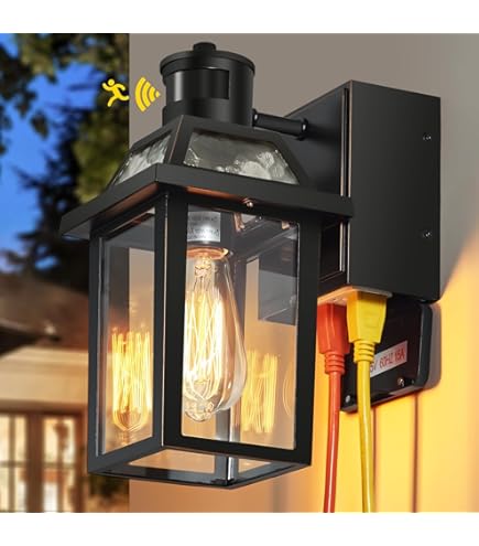 (puissance maximale de 14,5 A et charge maximale de 1080 W). Lampes murales extérieures du crépuscule au lever du soleil : cette applique murale extérieure est contrôlée par le capteur de cellule photoélectrique qui s'allume automatiquement à 100 % de luminosité la nuit, et s'éteint automatiquement pendant la journée pour éviter un gaspillage d'énergie efficace et économiser de l'argent pour vous. Remarque : n'oubliez pas d'appuyer sur le bouton « RESET » entre les prises de courant après l'installation pour réinitialiser les prises de courant pour l'utilisation. Lithonia Lighting Mini luminaire mural d'extérieur à DEL de 17,8 cm, 3 voies sélectionnables CCT Avec 2 sorties GFCI pour l'extérieur : ces lampes d'extérieur intègrent 2 sorties CFCI (disjoncteur de défaillance à la terre) et un accès plus facile à l'alimentation. Cette lampe de porche d'extérieur ne comprend pas l'ampoule. Williston Forge Lampadaire extérieur Christine Dusk to Dawn avec prise... Avec une conception d'ouverture pratique pour remplacer l'ampoule ou nettoyer. La base de nos lampes d'extérieur pour maison peut être compatible avec toutes les ampoules E26 (max 60 W), y compris LED, CFL, incandescence, halogène, etc. Peu importe qu'il pleuve ou qu'il neige, des températures ultra élevées ou basses, les lumières de maison d'extérieur peuvent garder un aspect élégant après des années d'utilisation, sans vous soucier du problème du vieillissement. Si vous avez des questions, vous pouvez les poser sur la page du produit ou nous contacter via Amazon, nous les résoudrons dans les 24 heures. FLORNIA Applique murale extérieure LED avec détecteur de mouvement... Applique Exterieur Detecteur De Mouvement Lampe De Porche Avec Sortie GFCI Du Crépuscule à L'aube Avec Applique Extérieure En outre, cette lampe de porche avec sortie GFCI est un accessoire décoratif mural qui fournit une belle lumière décorative pour le garage, l'entrée, la porte, le couloir, le balcon, la terrasse et le porche.