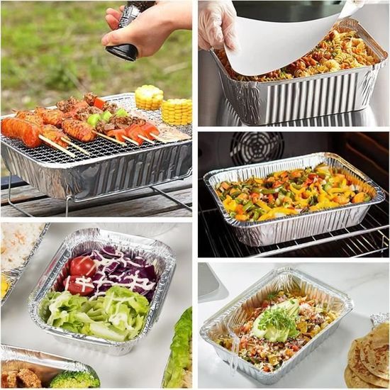 Le couvercle de la plaque de cuisson est fait d'une feuille d'aluminium d'un côté et de carton de l'autre, de sorte que vous pouvez le marquer pour le stockage. 【Haute qualité】Cette plaque en aluminium est fabriquée en aluminium de qualité alimentaire, vous pouvez donc l'utiliser en toute confiance. Le paquet comprend : 30 plateaux en papier d'aluminium. Par conséquent, nos récipients alimentaires peuvent être utilisés pendant une longue période, mais si vous estimez qu'il n'est plus utilisable ou que vous ne voulez pas le nettoyer, vous pouvez vous en débarrasser car ils sont recyclables. PANSYFEN 25 Pièces Barquettes en Aluminium Jetables avec Couvercle Après utilisation, vous pouvez le rincer et le réutiliser ou le jeter. Recyclable et réutilisable - L'aluminium est l'un des rares matériaux sur terre qui est recyclable à l'infini. 【Résistant à la chaleur】Ce moule à pâtisserie en aluminium permet une distribution uniforme de la chaleur et une circulation optimale de l'air, résistant à des températures allant jusqu'à 460 degrés Fahrenheit avec une bonne conductivité thermique, aidant à chauffer les aliments de manière uniforme pour des résultats de cuisson parfaits. Description du produit HMIEPRS 30 Pièces Barquette Aluminium avec Couvercle, Plateaux de Cuisson Jetables Aluminium avec Brosse en Silicone Combinaison avec couvercle - Le couvercle vous aidera non seulement à empêcher l'humidité d'entrer, mais aussi à marquer vos aliments pour mieux les conserver. Details zum Produkt Quantité suffisante Le fond a un design à motifs qui est antidérapant et sûr, et les bords ont un design rainuré pour un joint plus sûr. Idéal également pour faire des tartes à la viande, des tartes aux légumes et bien d'autres, des aliments chauds et froids, améliorez le plaisir et les joies de votre anniversaire, mariage, fête de vacances, célébrations de toute occasion avec ces casseroles jetables Avis : Ne peut pas être utilisé dans la cuisinière à induction, le four à micro-ondes. Barquette Plastique 30 Pièces Barquette Aluminium Avec Couvercle, Plateaux De Boite Aluminium Avec Couvercle HMIEPRS Lot de 30 barquettes en aluminium pour barbecue - Avec couvercle - 1100 ml - Avec brosse en silicone - Réutilisables - 22 x 16 x 5 cm... Taille : 22 x 16 x 5 cm / 8,7 x 6,3 x 2,0 pouces (longueur x largeur x hauteur). Il est parfait pour la cuisson au gril, la conservation des aliments, la cuisson des desserts ou l'emballage. Caractéristique : Nom:Plaques de cuisson en aluminium avec couvercles. Pratique - Vous pouvez utiliser la plaque de cuisson en aluminium pour les barbecues, les plats à emporter, la cuisson au four, la congélation des aliments et bien plus encore. Une quantité adéquate et la bonne capacité pour les réunions de famille et les besoins quotidiens.