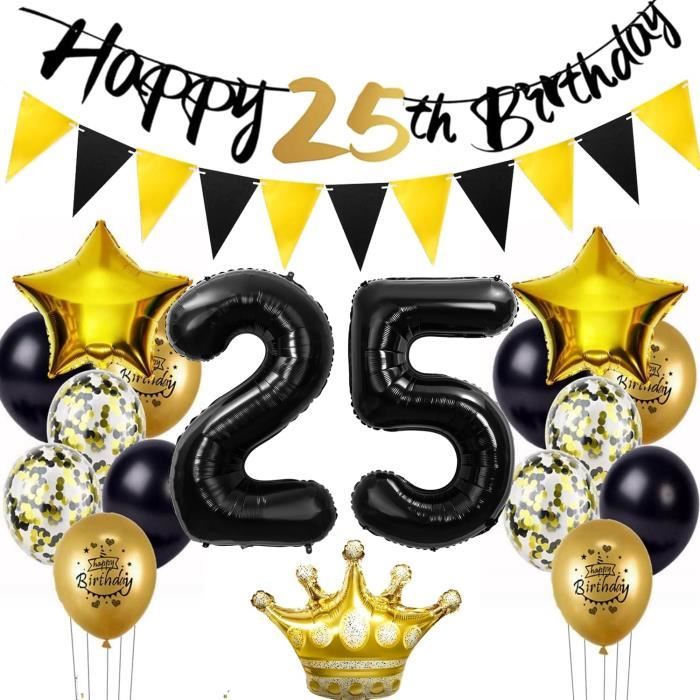 🎉 Noir -or Décoration de fête d'anniversaire 25 ans : quantité suffisante pour décorer une belle fête d'anniversaire 25 ans filles femmes /garçon homme avec une surprise romantique, une décoration d'anniversaire et des idées de cadeaux pour les adolescentes filles/garçons,Gagnez du temps et de l'argent : les belles fournitures de fête d'anniversaire sont très complètes, y compris tout ce qui est nécessaire pour tenir une fête à thème de rêve. pour décorer votre gâteau, et rendre votre gâteau plus énergique et plus beau. 🎁 25 ans décoration d'anniversaire est parfait pour accrocher partout dans votre maison, que ce soit à l'intérieur ou à l'extérieur. Description du produit Vous avez bientôt un anniversaire ou une fête ? Ensuite, nous avons le pack de décoration parfait pour décorer votre fête dans les couleurs or et noir ! Nous proposons un ensemble complet, où vous avez tout en 1 achat pour rendre votre fête inoubliable ! Rien n'est trop fou pour nous. Vous avez 25 ans ? Êtes-vous la future mariée ou êtes-vous mariée depuis 50... Ballon 21 Ans Homme Femme Anniversaire Décoration Noir Or Ballon 21 Ans Anniversaire Homme Femme... Ballon Pour 25 Ans Homme Ballons 25 Ans Anniversaire Homme Femme Décoration Noir Or Confettis Anniversaire ✨ Ballons de haute qualité:Décoration d'anniversaire Fabriqué à partir de papier d'aluminium de haute qualité et de latex, non toxique et inoffensif, épais, durable. Décoration anniversaire 25 ans homme Toutes les décorations de gâteau sont faites de papier épais. Comme le plafond, le jardin, la porte. Les couleurs sont vives et peuvent être réutilisées.
