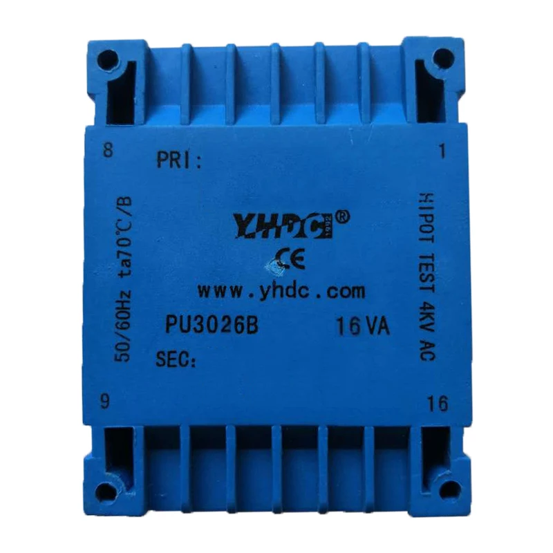 <br>Voltage regulation: ≤30% <br>Temperature rise: ≤20℃ <br>No-load loss: ≤0., 5W <br>Weight: 105g Pe2818S-I 3Va 220V 12V Transzformátor Pcb Rögzítő Kapszulázott... <br>Vacuum epoxy encapsulated, PCB mounting. Power: 3VA Primary voltage: 230V Secondary voltage:9V Installation method: PCB Flame resistance: UL94-V0 Isolation class: B Working temperature: -30 ° C ~ + 70 ° C Frequency: 50Hz ~ 60Hz Dielectric strength: 3., 75KV 50Hz 1min Primary voltage range: ±10% Voltage regulation: ≤30% Temperature rise: ≤20℃ No-load loss: ≤0., 5W Weight: 105g YHDC PCB Welding Isolation Transformer PE2818S-I 3VA 230V/9V 1 TRANSFORMATEUR ENTRÉE : 230 v sortie : 12v 3va MOD.153/M by PMA PCB WELDING ISOLATION TRANSFORMER Seria PE2818S-I Vacuum epoxy encapsulated, PCB mounting. Primary voltage: 110V/220V/230V or producing as customized.