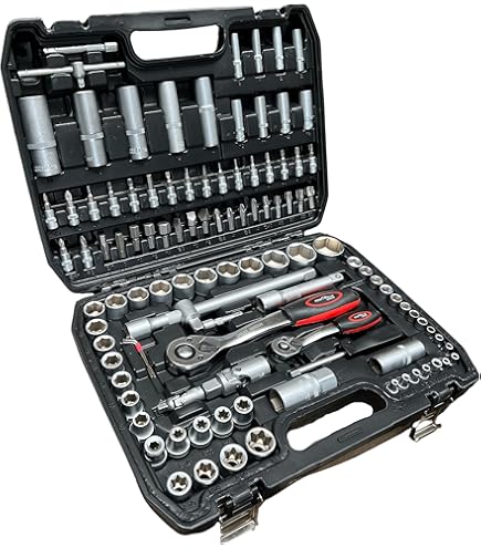 Le kit contient les embouts suivants pour le cliquet 12,5 mm 1/2 : - 1 cliquet réversible à 72 dents - 2 rallonges 125 + 250 mm - 1 joint de cardan 12,5 mm (1/2) - 1 poignée en T avec pièce coulissante de 250 mm - 1 poignée articulée de 430 mm - 1 douille pour bougie d'allumage., 16 mm. Cet ensemble de douilles à chocs de taille 1/2 est compact et léger, il tire le meilleur parti de son espace avec un total de 19 douilles longues et 6 douilles courtes de 10 à 19 mm à 12 pans. Les douilles à chocs sont l’outil parfait pour tout projet d’entretien ou de réparation - 19 douilles avec profil hexagonal 8-10-11-12-13-14-15-16-17-18-19-20-21-22-24-27-30-32-36 mm Kraftwerk Coffret Cliquet Coffret Tournevis Et Embouts TOLSEN 26 Pièces, Cliquet 72 Dents, Ergonomique Outillage Mecanique Auto La boîte à noix est livrée dans un coffret pratique et est à la fois un outil de voiture et un outil de moto. STANLEY Coffret de Douilles Compact 1/4 - Jeu de 37 Pièces STMT82672... Mallette À Outils 108 Pièces Jeu De Douilles Outils Douilles Cliquet Boîte - Coffret multi Grâce à la finition en chrome vanadium de qualité supérieure, la boîte à cliquet convainc par sa qualité et sa durabilité maximales. Le kit contient les embouts suivants pour le cliquet 12,5 mm 1/2 : - 1 cliquet réversible à 72 dents - 2 rallonges 125 + 250 mm - 1 joint de cardan 12,5 mm (1/2) - 1 poignée en T avec pièce coulissante de 250 mm - 1 poignée articulée de 430 mm - 1 douille pour bougie d'allumage., Environ 16 mm