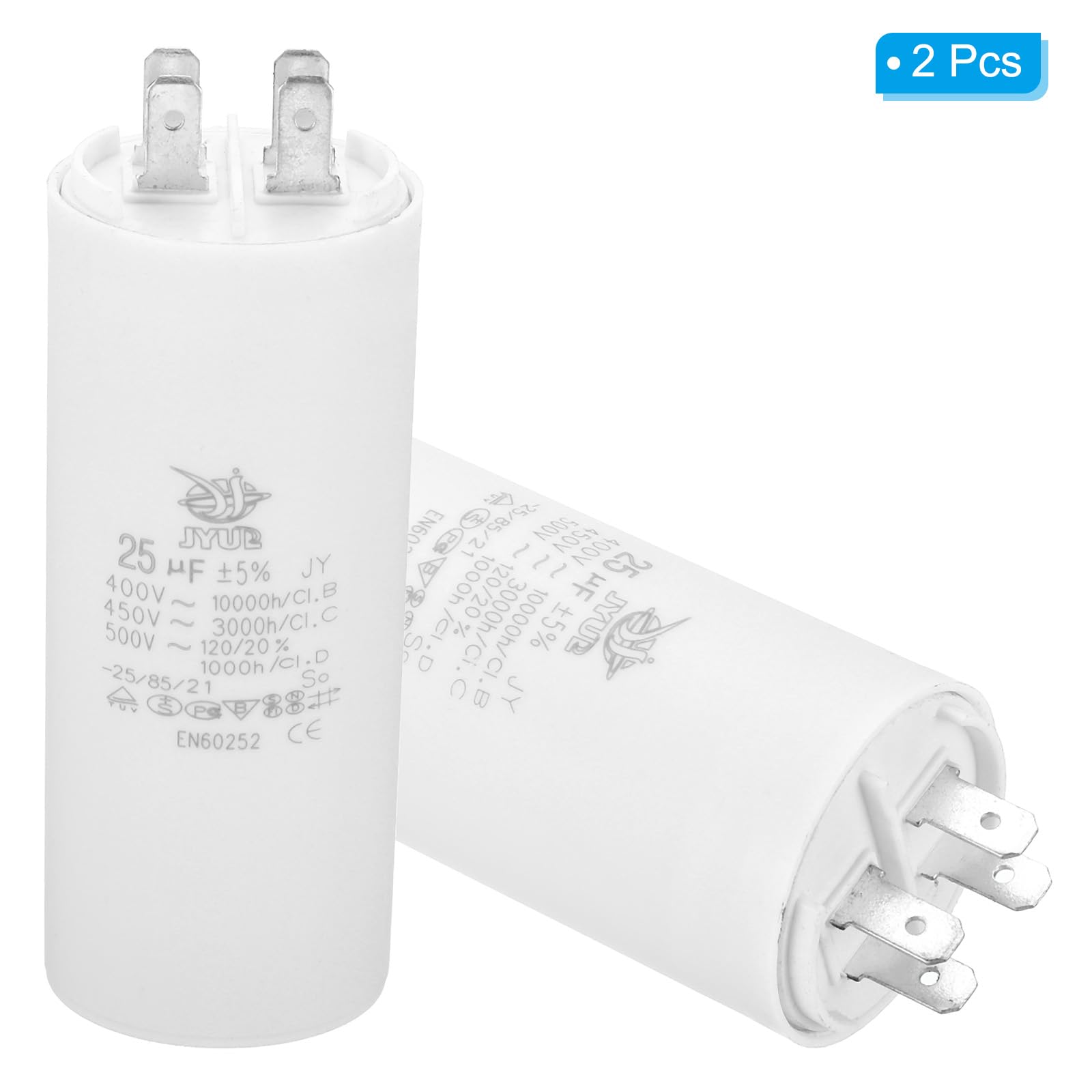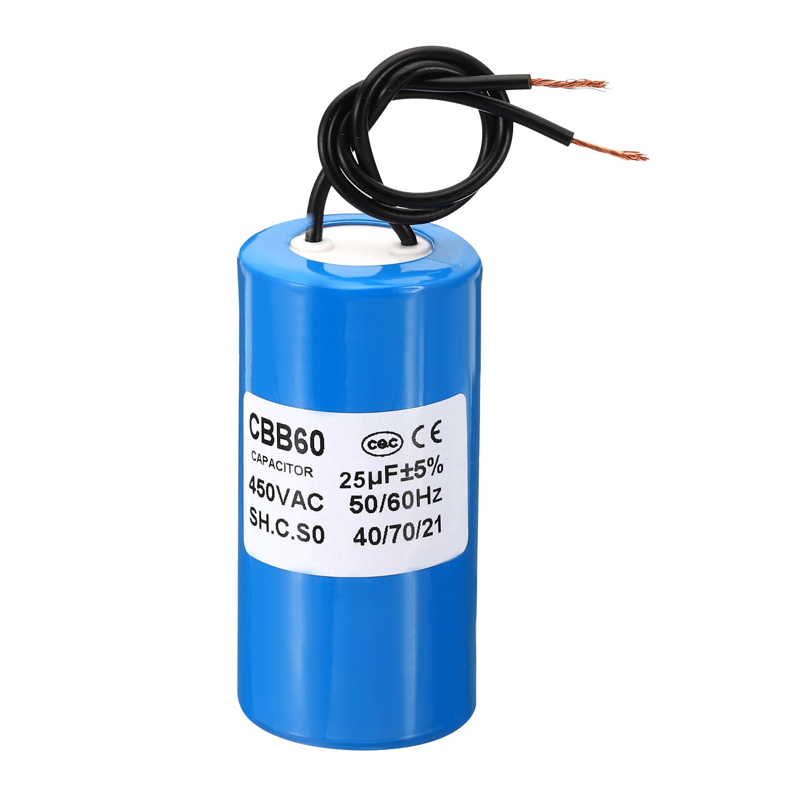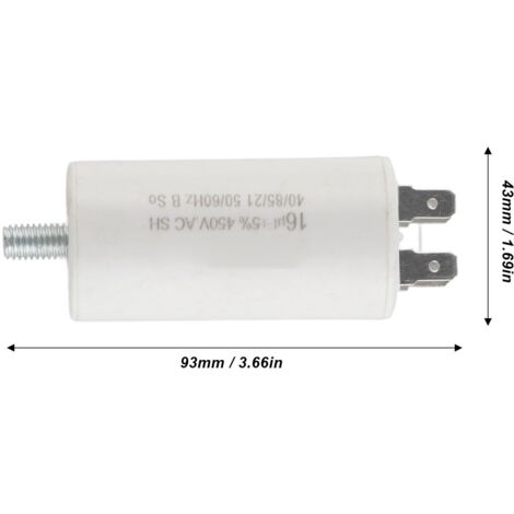 Le condensateur CBB60 convient au démarrage de moteurs monophasés fonctionnant à des fréquences de 50 Hz et 60 Hz, largement utilisés dans diverses occasions, telles que les compresseurs d'air, les pompes à eau, les machines à laver, les perceuses, les scies, les meuleuses, etc. Il est apolaire pour une connexion facile et pratique sans souci de polarité. Application : Le condensateur CBB60 convient au démarrage de moteurs monophasés fonctionnant à des fréquences de 50 Hz et 60 Hz, largement utilisés à diverses occasions, telles que les compresseurs d'air, les pompes à eau, les machines à laver, les perceuses, les scies, les meuleuses, etc. Condensateur de démarrage à fils 25µF 450V - Probois Machinoutils Note Veuillez éviter de dépasser les niveaux de courant ou de tension recommandés pendant l'utilisation. Condensateur Cbb 60 PATIKIL Condensateur Fonctionnement CBB60 25 µF 2 Moteur Compresseur Spécification Capacité nominale : 25 uF ; Tension nominale : 450 V CA ; Fréquence nominale : 50/60 Hz ; Type de câble : 2 câbles ; Écart de capacité : ± 5 % ; Température de fonctionnement : 40/70/21℃ ; Taille du corps : 40 x 70 mm/1,6 x 2,8 pouces ; Couleur : Blanc ; Matériau : plastique ; Liste de colisage : 2 condensateurs CBB60., Avantage Le condensateur est composé d'un film polypropylène et d'une coque en aluminium, garantissant une faible perte d'énergie, une bonne dissipation thermique et une protection robuste. Il est apolaire pour une connexion facile et pratique, sans souci de polarité. Il peut supporter de lourdes charges grâce à une isolation fiable et une excellente résistance aux chocs. Le condensateur CBB60 convient au démarrage de moteurs monophasés fonctionnant à des fréquences de 50 Hz et 60 Hz, largement utilisés dans diverses occasions, telles que les compresseurs d'air, les pompes à eau, les machines à laver, les perceuses, les scies, les meuleuses, etc. Le condensateur CBB60 convient au démarrage de moteurs...