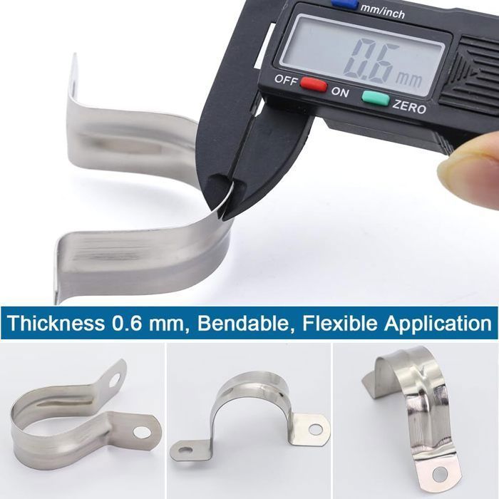 Applicabilité dans plusieurs scénarios : la fixation de tuyau peut être utilisée sur différentes surfaces telles que le bois et le béton. Ils sont fabriqués en acier inoxydable 304 d'une épaisseur de 1,2 mm, ce qui assure une grande durabilité. Remarque : Les dimensions des colliers de serrage en U peuvent varier en raison de la mesure manuelle. Ils résistent à des températures allant jusqu'à 800 °C et offrent une protection complète contre la corrosion et l'oxydation. Ce collier de serrage en acier inoxydable est particulièrement utilisé dans les cuisines, les salles de bains et les systèmes de drainage extérieurs. Le collier de serrage offre une capacité de charge extrêmement élevée et convient à différents environnements d'installation, y compris les tuyaux en PVC, les tuyaux en acier, les tuyaux d'air et de vidange. Lot de 10 colliers de serrage en U - 50 mm - En acier inoxydable - Type U - Pour fixation des tuyaux de gaz, des tuyaux d'eau et des câbles (50 mm) · 50 mm... Les colliers de serrage de 50 mm sont fabriqués en matériau de qualité supérieure et durable pour assurer une fixation fiable des tuyaux et des tuyaux. Taille et design robuste : ces colliers de serrage de 50 mm sont adaptés à différents types de tuyaux. Cela contribue à prolonger la durée de vie des tubes et convient également pour une utilisation avec des colliers de serrage métalliques. YUUTIAL Lot de 10 colliers de serrage 50 mm à deux trous en U en acier Le support de tuyau en acier inoxydable offre flexibilité et sécurité lors de l'installation. Collier De Serrage Inox Papillon Lot De 30 Colliers De Serrage En Acier Inoxydable De 18 Mm En Forme De U Deux Trous Colliers De Fixation En Metal En Forme De U Pour Tuyau Deau Et Conduite Collier Inox Leroy Merlin Réduisez le bruit et les vibrations : ces colliers de fixation pour tuyaux protègent la surface du tuyau lors du serrage et réduisent efficacement le bruit et les vibrations. Facile à installer et largement utilisé : ce collier de serrage est équipé de trous de renfort, de sorte que les utilisateurs peuvent choisir des vis appropriées, telles que des vis à béton ou des vis autotaraudeuses. En raison des différences entre les écrans, il peut y avoir une aberration chromatique dans la couleur des colliers de serrage en U. Installation facile pour tous : conçu avec un support en forme de U et un système de tension à deux trous, l'installation est simple, même pour les débutants. - Ce kit contient 10 colliers de serrage lourds en U de 50... Nombre total de produits : 10 pièces Dimensions : voir photo.