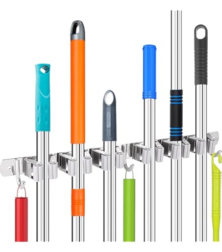 1 support mural pour balai et vis de perçage. 2- Support mural pour balai autocollant. Support pour balai antidérapant : support mural robuste avec une capacité de charge de 11,3 kg. Commandez dès aujourd'hui pour profiter de notre support mural pour balai. Lot de 2 supports muraux en acier inoxydable pour balai et serpillère Méthode d'installation : autocollant et perçage de vis. Matériau : acier inoxydable SUS304 et silicone respectueux de l'environnement. Si vous n'êtes pas satisfait des crochets muraux pour quelque raison que ce soit, n'hésitez pas à nous contacter pour obtenir un remboursement conformément à la politique. Style : moderne et élégant., Couleur : noir. Ce support pour balai et balai dispose de 2 fentes antidérapantes à double poignée en caoutchouc, qui garantissent que le balai et la serpillère ne tomberont pas, y compris les serpillères humides, les râteaux sales, l'aspirateur balai et d'autres outils matériels. Vous pouvez choisir la solution d'installation appropriée en fonction de la surface d'installation, autocollant pour surface lisse et vis de perçage pour surface rugueuse. Une organisation sans désordre - Optimisez l'espace dans votre garage, votre cuisine, votre buanderie, votre abri de jardin ou votre bureau grâce à ce porte-balai mural, doté de 6 crochets et de 5 emplacements pour ranger proprement balais, serpillières, râteaux, pelles et autres 6 rubans adhésifs 3M., 12 vis., 12 ancres., 12 manchons à vis., 12 cache-vis. Reliahom Lot De 6 Supports Muraux En Acier Inoxydable Pour Lot de 2 supports muraux pour balais, avec 5 supports et 4 crochets, en acier inoxydable, autocollant, pour la maison, la cuisine, le garage Notre support de... Par rapport au support de balai et balai en plastique, il est plus solide et durable. Satisfaction garantie : nous croyons en la qualité de notre support mural pour balai et balai et la satisfaction de nos clients est notre priorité absolue. Support de balai simple de qualité supérieure : le crochet à balai unique SayOneYes est fabriqué en acier inoxydable SUS304, résistant à la corrosion, à la rouille, à l'humidité et à l'eau, peut s'adapter à tous les types d'environnements. Contenu de l'emballage : 6 supports muraux pour balais. Vous pouvez organiser tous les services de nettoyage en un seul endroit, le support mural unique peut s'adapter à la buanderie, la cuisine, le placard, le garage, le garde-manger, la cave et excellent pour un usage commercial.