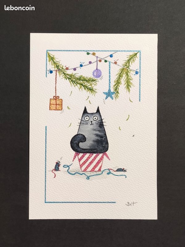 Carte D'anniversaire Aquarelle Chat Noir : Voeux Amusants