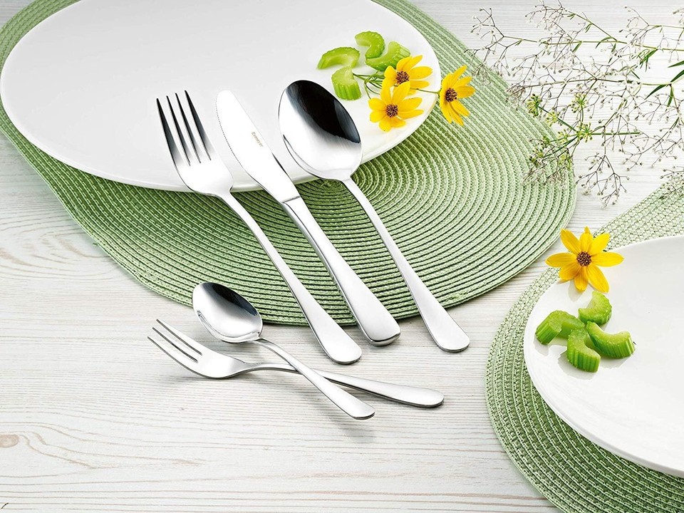 6 cuillers à café et 6 fourchettes à dessert Menagere 32 Pieces Inox... Kaffeelöffel Esmeyer SYLVIA 156120 Bei Büromaterial Esmeyer Couverts pour steak/pizza SYLVIA, 12 pièces en acier inoxydable chromé 18/10, passe au lave-vaisselle, épaisseur du matériau 2,5 mm, couteau en acier martensitique avec lame dentelée, composé de 6 couteaux et 6 fourchettes (156-256 Finition : lot de 12 cuillères à café., Passe au lave-vaisselle., Surface : polie.