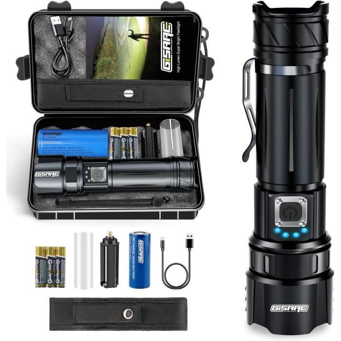 Modèle 3 : 300 lumens/9,5 heures. Le MCC inclus mesure 1,2 m de long pour permettre un montage plus facile près d'une source d'alimentation. Lampe Frontale Olight Lampe Tactique Rechargeable XT12GT PRO LED - 1600 Lumens - Lampes Lampe Torche Puissante Taille compacte avec une performance puissante : offre une puissance maximale de 3 200 lumens et une longue distance de faisceau de 250 mètres, vous offrant une nouvelle expérience d'éclairage de niveau phare. Le Seeker 2 Pro dispose d'un grand interrupteur latéral situé près de la tête de la lumière pour une utilisation confortable du pouce et des indicateurs sur les deux côtés de l'interrupteur affichent clairement la puissance de la batterie et le niveau de luminosité. Caractéristiques : Source de lumière : 3 LED (CCT: 5700-6500 K)., Max., Couverture : 250 m., Longueur : 128 mm. Description : La Seeker 2 Pro est une lampe de poche LED puissante et rechargeable. Kit de chargeur L-Dock pratique inclus : peut être fixé ou fixé sur un mur ou une table à l'intérieur qui est proche d'une source d'alimentation, fournissant un emplacement de charge dédié à votre Seeker 2 Pro. Sortie : Modèle 1 : 3200 ~ 600 lumens / 2 + 150 minutes. Utilisation sûre : des capteurs thermique et de proximité sont intégrés pour la protéger contre les surchauffes et les obstacles proches. Rainures de doigts fraisées et silicone dermatoglyphique : le Seeker 2 Pro est conçu de façon ergonomique pour être extrêmement confortable et offre une prise en main antidérapante. Olight Seeker 4 Pro | Lampe Torche LED Ultra Puissante 4600 Lumens... Compatible avec la plupart des sources d'alimentation USB, le câble de charge magnétique est pratique à utiliser, ce qui en fait un kit d'éclairage idéal pour être utilisé à la maison, à l'extérieur ou pendant le travail. Il utilise des LED de haute qualité couplées à une lentille optique TIR, offrant une expérience d’éclairage parfaite à moyen et à proximité. Diamètre de la tête : 35 mm. Le Seeker 2 Pro comprend un câble USB magnétique de 1 A de long (le MCC1AL est compatible avec les séries Olight S, M et H). Lampe torche Olight R50 Pro Seeker : test et avis complet