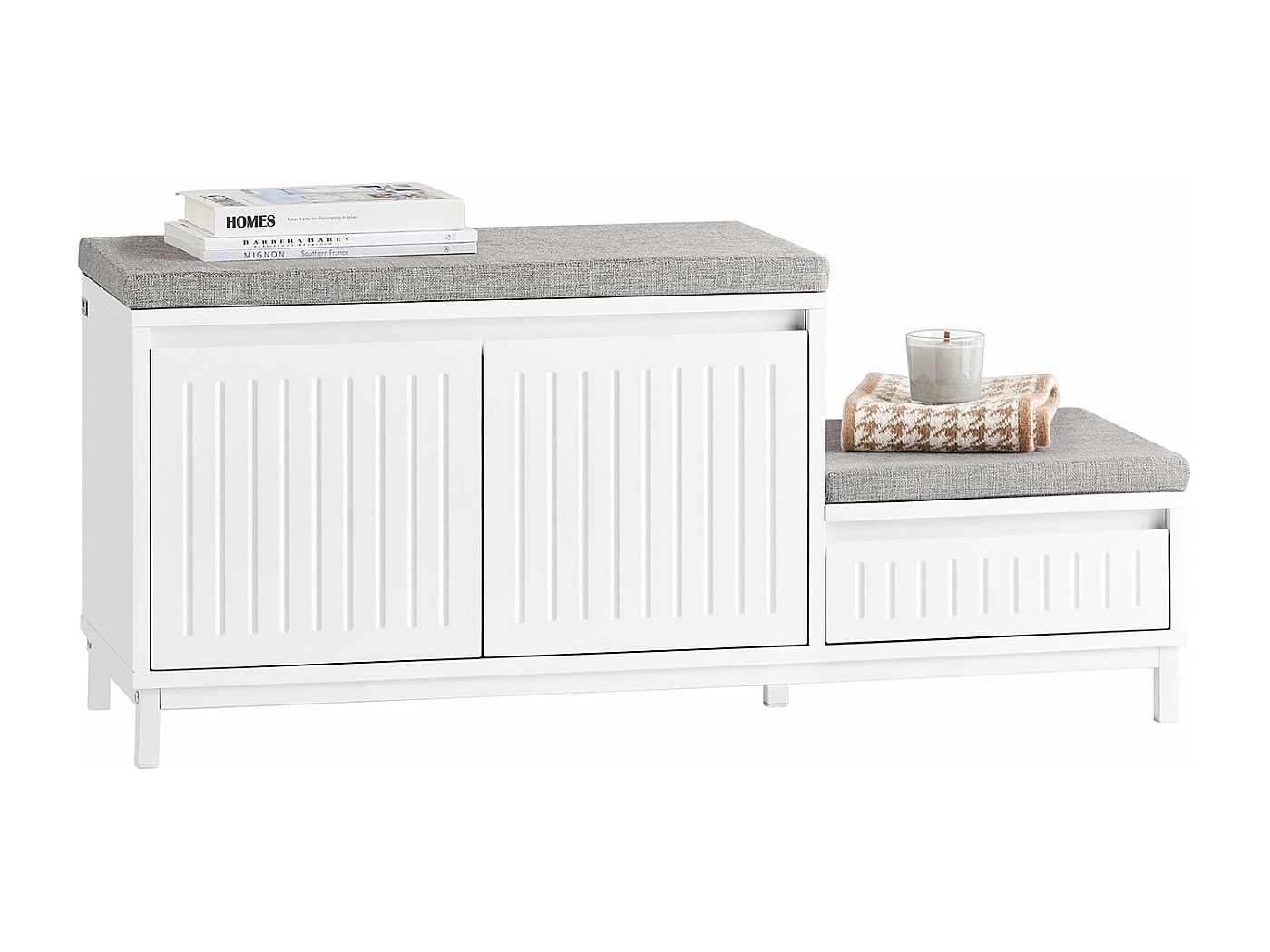 SoBuy FSR87-SCH Meuble d'entrée avec 2 abattants permettant le rangement des chaussures Design modern et élégant. Convient comme armoire à chaussures pour toute la famille Meuble D'entrée Fin SoBuy Porte-Chaussures De Rangement Réglable Blanc Meuble à Chaussures Avec 2 Rabats Et 2 Compartiments à Jour Et 1 Porte FSR111-W Sobuy Banc De Rangement [Grand espace de rangement modulable] Ce meuble à chaussures entrée offre un rangement chaussures généreux avec 2 abattants à double niveau, 2 tiroirs, 1 porte et 1 compartiment ouvert pour les pantoufles ou sacs Avec la notice de montage illustrée et les pièces numérotées, le montage est facile.Facture fournie. Et le temps passé à chercher des clés de voiture ? Les deux tiroirs en haut sont prévus pour vos clés, vos agendas, votre portefeuille, etc. SoBuy FSR104-W Meuble de rangement à Chaussures Une entrée organisée n'a jamais été aussi belle. Il s'adapte bien à toutes les tendances de décoration intérieure et vous offre grand espace de rangement fermé des chaussures. Livraison en deux colis: colis A et colis B. Avec 2 abattants et des cloisons intérieures amovibles, vous pouvez enfin avoir toutes vos chaussures rangées au même endroit. Trois niveaux de rangement réglables en hauteur derrière la porte où vous pourrez ranger des écharpes, des chapeaux, des boîtes ou des bottes [Idéal pour l’entrée et le couloir] Grâce à son design fin (26 cm), ce meuble d’entrée s’intègre parfaitement dans les espaces réduits. SoBuy Armoire à Chaussures Meuble de Rangement à Chaussures Commode à Doté un compartiment ouvert supplémentaire en dessous pour les pantoufles. Facile à installer, avec tous les accessoires requis pour l'installation. [Adapté à plusieurs types de chaussures] Le compartiment fermé avec étagères réglables permet de ranger aussi bien chaussures basses que bottes. Que vous sortiez ou rentriez chez vous, vous pouvez facilement changer de chaussures. Parfait pour votre appartement ou votre maison, à l'entrée, dans la chambre ou la salle de séjour, etc. [Matériaux durables et montage facile] Fabriqué en MDF laqué blanc, ce meuble de rangement chaussures est facile à entretenir. Avc 2 abattants t ds cloisons intériurs amovibls, vous pouvz nfin avoir touts vos chaussurs rangés au mêm ndroit. Trois nivaux d rangmnt... Poids de l’envoi : 42,5 kg. Parfait comme meuble chaussure blanc pour un hall d'entrée moderne