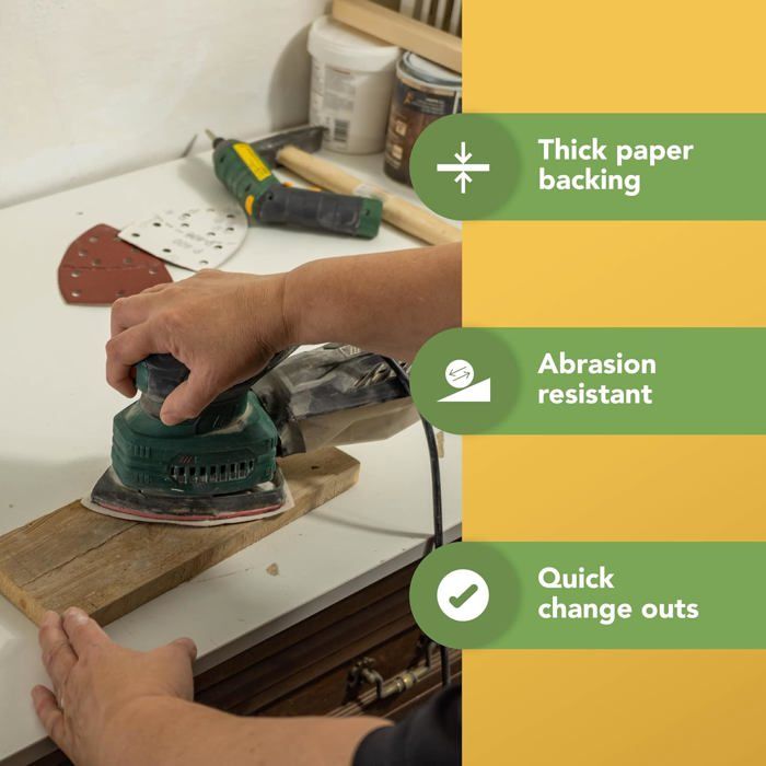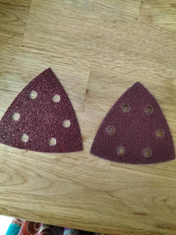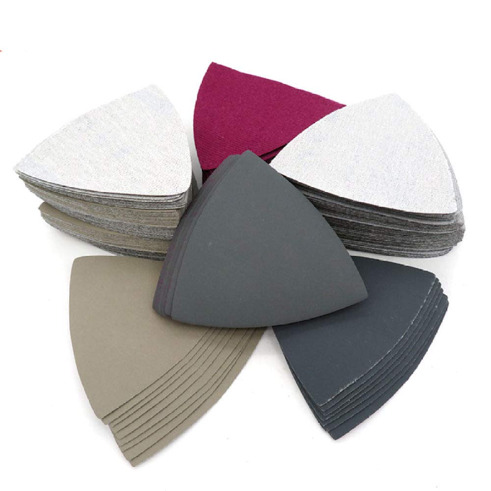 Lot de 100 Triangles abrasifs - 6 trous - 90 x 90 x 90 mm Pour ponceuse delta - Feuilles abrasives triangulaires - Ponçage et polissage(120#) | Leroy Merlin Ce lot de 100 papiers abrasifs triangulaires (90mm de côté) est idéal pour tes travaux de ponçage ! Grains de 40 (très grossier) à 1000 (très fin... Papier Abrasif Triangulaire Pour Ponceuse Lot De 50 Feuilles De Papier Abrasif Triangulaire, Grain 240 Papier Pour Ponceuse Triangulaire Taille. 100 Grits · Type de support. Papier · Marque. Sydien · Type de grain. Fin · Classe granulométrique. 100 · Matériau. Oxyde d'aluminium