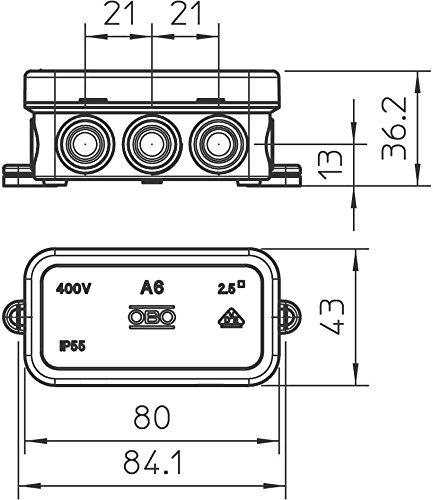 OBO Bettermann Rohrendtülle teilbar M20, PE, lgr 129 TB M20 - OBO Conducteur de section 2,5 mm², sans, – Forme rectangulaire Type de montage Montage mural/plafond Longueur 43 mm, largeur 80 mm, profondeur : 34 mm, Nombre d'entrée, 10, Type de boîtier – Plastique sans halogènes réseau, Couleur : Gris, Type de protection (IP) IP55, couvercle non transparent – Fixation couvercle aufrastend, tension nominale d'isolation Ui 400 V – Maintien de la fonction sans pour ex de la zone Gas sans, pour ex de la zone de la poussière sans la boîte de dérivation a – A 6, Max., Échelle section = 2,5 mm² , = sans – , Forme = rectangulaire Boîte de jonction 80x43x34, PE, lgr - Boîte montée en surface 43x80mm A 6 ... 1,38 € incl. TVA. ... Veuillez noter que les travaux électrotechniques sont... Résistant Au Feu Boites De Dérivations - Comparez Les Prix Pour Professionnels Sur Boite Etanche Electrique Exterieur Indice de protection IP55, tension nominale 690 V, section nominale 2,5 ÷ mm², 6 entrées pour diamètres de câble 5-14 mm 4 entrées pour câbles d'un diamètre de 5-9 mm. Couvercle de serrage Introduction par l'arrière = non