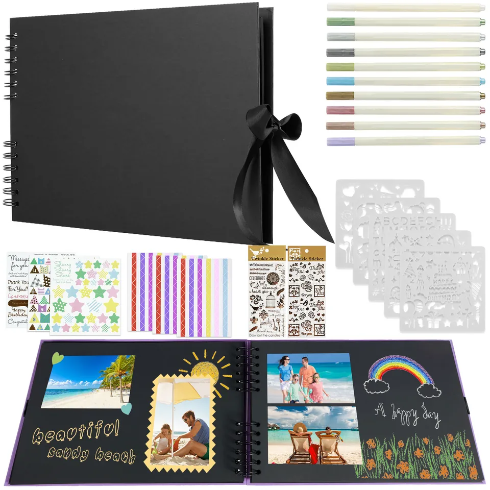 Préservez vos précieux souvenirs pendant une longue période avec ces superbes albums de scrapbooking. Qualité et design : l'album photo est fabriqué en lin de haute qualité avec une fermeture à ruban pratique. Le papier noir épais met en valeur les couleurs de vos photos et offre un maintien stable