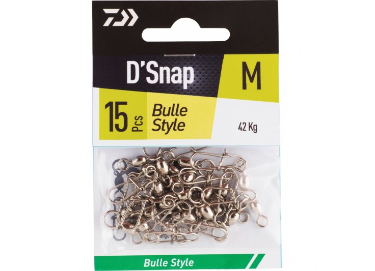 Taille produit : S - Taille Emerillon: N°8 - Taille Agrafe : N°16 Taille produit : M - Taille Emerillon: N°6 - Taille Agrafe : N°12 Taille produit : L - Taille Emerillon: N°2 - Taille Agrafe : N°6 Taille produit : XL - Taille Emerillon: N°2 - Taille Agrafe : N°4 Quantité: 10 Taille produit: L, Quantité: 10 , Taille produit: L Leurre Souple EMERILLON A AGRAFE DAIWA PROREX Emerillon Agrafe Les émerillons à agrafe Prorex de DAIWA sont conçus pour la pêche en eau douce et en eau salée. Ils sont fabriqués avec des matériaux de haute qualité, offrant une résistance et une durabilité exceptionnelles Agrafe Daiwa Insurance Snap 20kg n°1 par 20 - Agrafes - Emerillons