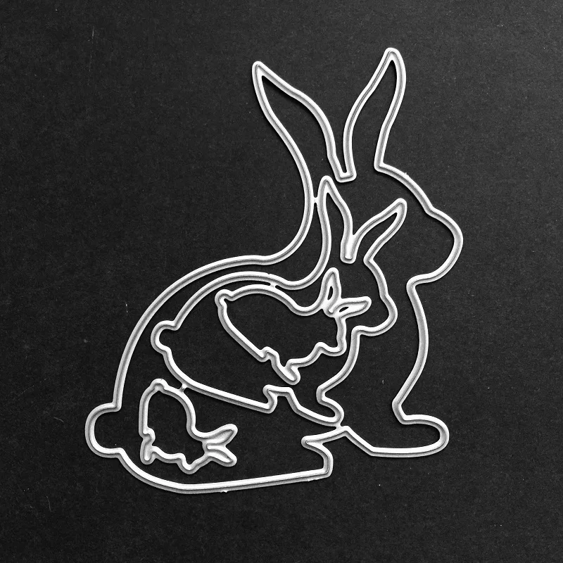 Retrouvez 3 lapins accompagnés d'embellissement, d'une carotte, d'un œuf et d'un petit cœur : un design audacieux pour donner du peps à vos créations sur le thème du printemps ou Pâques !
