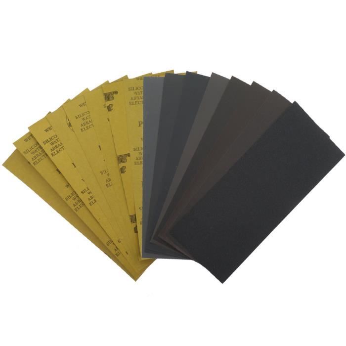 Utilisation : Meulage et polissage , Grain : 80/120/180/240/400/600 Large gamme d'utilisations : Contenu de l'emballage : 10 feuilles de papier abrasif grain 80, 10 papiers abrasifs grain 120, 10 papiers abrasifs grain 180, 10 papiers abrasifs grain 240, 10 papiers abrasifs grain 400, 10 pièces de papier abrasif grain 600, 1 kit de ponceuse de détail de 27 x 90 mm Outil équipé : Poignée de 27 x 90 mm de long Dos floqué pour un retrait facile. Papier abrasif anti-encrassant delta 93 x 93 mm grain 80, lot de 5... Viaky 61 Sheets 30 X 93mm 80 120 180 240 400 600 Sandpaper Assortment (Remarque : convient pour le broyage à sec). Les feuilles de papier abrasif Viaky ont un grain uniforme, adaptées pour le polissage du bois, le polissage du plastique, le polissage de la peinture de voiture, le polissage du métal, etc. Durable et tranchant L'abrasif est fabriqué en oxyde d'aluminium, ce qui le rend uniformément affûté, tranchant et résistant à l'usure, durable. En outre, le numéro de grain est imprimé au dos de chaque papier abrasif pour vous aider à trouver le bon papier abrasif sur des surfaces similaires et améliorer l'efficacité. Papier abrasif pour la métallographie ambulatoire des composants de S... Papier abrasif de qualité supérieure : le papier abrasif est fabriqué en oxyde d'aluminium, ce qui le rend uniformément affûté, tranchant et résistant à l'usure, durable. Numéro de grain marqué au dos pour une sélection facile du bon papier de verre. Nombreuses utilisations : Papier abrasif idéal pour le ponçage des détails, les petites crevasses et le ponçage dans les endroits et coins étroits. Lot De 180 Feuilles De Papier Abrasif Pour Ponceuse Multifonction 105 X Design auto-agrippant Le papier abrasif floqué à l'arrière, dispose d'un crochet et d'une boucle arrière pour une fixation facile sur les outils de poignée d'accompagnement, facile à installer. (Traitement du bois, ponçage de plaques de plâtre, ponçage des métaux, meulage de meubles, etc., ) Précautions d'utilisation : 1., Avant de meuler, assurez-vous que le tampon de ponçage est propre et sec afin que vous puissiez mieux utiliser le papier abrasif rouge et obtenir de meilleurs résultats de broyage., 2., Remarque : convient pour le broyage à sec, sec humide n'est pas applicable. Avantages des feuilles abrasives 1., Détails bien polis Papier abrasif de 30 x 93 mm, idéal pour le ponçage des détails, les petites crevasses et le ponçage dans les endroits et coins étroits., 2., Parfaitement résistant à l'usure Les feuilles abrasives ont une bonne dureté, les particules ne tombent pas facilement, et le broyage est tranchant et durable., 3., Plusieurs grains Les feuilles abrasives ont 5 grains différents, qui peuvent être remplacés selon vos besoins de polissage. Caractéristiques : Matériau : Oxyde d'aluminium , Couleur : Jaune Facile à remplacer : crochet et boucle arrière pour un remplacement facile. Nombreuses utilisations : papier abrasif idéal pour le ponçage des détails, les petites crevasses et le ponçage dans les endroits et coins étroits.