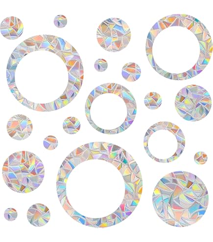 Double fonctionnalité : en plus de leur capacité à repousser les oiseaux, les disques répulsifs réfléchissants ZONADAH servent également d'éléments décoratifs attrayants. Lot De 96 Autocollants Ronds Pour Fenêtre - Anti-collision - Pour Poids : environ 10 g par disque. Résumé : les disques répulsifs réfléchissants ZONADAH offrent une solution pratique et élégante pour éloigner les oiseaux. Contenu : le paquet contient 20 autocollants électrostatiques de 5 formes d'oiseaux différentes. Chaque forme comporte 4 pièces. Une quantité suffisante peut répondre à vos différents besoins. Un design attrayant peut apporter une touche de vivacité à la décoration de vos fenêtres Sa finition argentée brillante ajoute une touche d'élégance aux murs et fenêtres de votre maison et améliore à la fois la fonctionnalité et l'esthétique. Grâce à ce processus d'application simple, vous pouvez facilement placer les disques à différents endroits de votre maison ou de votre jardin. 3 pcs répulsifs pour oiseaux, répulsif pour oiseaux réfléchissant... Construction haute densité et durable : chaque disque répulsif anti-oiseaux réfléchissant ZONADAH est fabriqué en PET de haute qualité et en film laser, ce qui le rend extrêmement durable et résistant à la casse, à la décoloration et à l'eau. Ces disques en PET durable et film laser reflètent la lumière intense du soleil pour dissuader efficacement les oiseaux sans causer de dommages. Lot De 20 Autocollants D'alerte Anti-collision Pour Fenêtre Et Porte En Verre Protection Des Oiseaux Couleur 72054828 En outre, grâce à leur design fin, ils sont un ajout visuellement attrayant à n'importe quelle pièce. La surface réfléchissante crée une forte dissuasion et éloigne efficacement les oiseaux de votre propriété sans les endommager. Avec un diamètre de 7,5 cm, ces disques sont compacts mais très efficaces et offrent des performances durables dans différentes conditions météorologiques. Multi-usage : ces disques sont parfaits pour une variété d'utilisations et peuvent être utilisés dans divers espaces intérieurs et extérieurs, y compris les cours, les jardins, les porches, les piscines, les fenêtres de restaurant et les véhicules. Sa polyvalence garantit un répulsif efficace contre les oiseaux partout où vous en avez besoin.