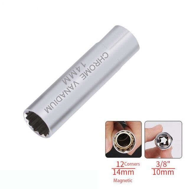 Douille de bougie d'allumage 16 mm et 14 mm pour moto, clé à bougie d'allumage, jeu de clés à bougie d'allumage, clé à bougie d'allumage, clé magnétique pour clé à douille de bougie d'allumage FOCCTS Clé à Bougie 14mm Longue & Clé à Bougie 16mm Longue, Démonte Bougie D'allumage, Entraînement Magnétique à 12 Points pour Plus d'Automobile Fonctions : - Design 12 points, 16 mm, 14 mm, tête magnétique, clé d'allumage 3/8. 14/16mm Clé à Bougie, Outil Universel de Retrait de Douille de Bougie D... - Douille bougie moto est équipé d'un aimant puissant qui maintient fermement la bougie d'allumage en place et évite toute perte. - Nos cle de retrait de bougie d'allumage présentent une surface unique rugueuse, spécialement conçue pour augmenter l'adhérence et faciliter le retrait de la bougie d'allumage. 【Détails du produit】 - Cette douille de bougie d'allumage magnétique à paroi mince de 3/8 dispose d'un design à 12 points, d'une tête magnétique de 16 mm et d'une clé à bougie d'allumage de 14 mm. L'aimant interne ne s'use pas avec le temps, contrairement aux joints en caoutchouc traditionnels, assurant ainsi une durée de vie plus longue. Clé à douille 14mm pour bougie avec entrainement en 3/8 Construit et construit pour le retrait et l'installation de la bougie d'allumage. L'aimant intérieur ne s'use pas avec le temps comme les joints en caoutchouc traditionnels et offre une longue durée de vie. En raison des mesures manuelles, des écarts de 0 à 1 cm peuvent survenir. Clé Bougie 14mm FOCCTS 2pcs Douille Bougie 16mm/14mm, Clé A Bougie Magnétique Cle Bougie 14 Facile à installer : le diamètre de la douille magnétique pivotante est de 14 mm/16 mm. Encoche pour un retrait facile avec une clé, s'adapte à la plupart des... 【Durabilité et résistance à la corrosion】 - Clé à douille pour bougie d'allumage est fabriqué en acier au carbone trempé et traité thermiquement. Contenu : 1× Clé Bougie 14mm 1× Clé à Bougie Moto 16mm Remarques: Veuillez vérifier la taille de nos outils pour clés à bougie avant l'achat.