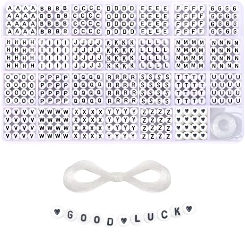 【Dimensions】 Le lot de perles alphabétiques est de taille standard, avec un diamètre de 7 mm (0,27 pouces) et une épaisseur de 4 mm (0,16 pouces). Matériel: Acrylique Description du produit: (1) 26 perles noires et blanches de A à Z (environ 50 à 60 pour chaque lettre), ainsi que des perles colorées en forme de cœur et de visage souriant, qui peuvent être assorties de différentes manières (l'ensemble comprend également 2 lots de cordons élastiques élastiques) (2) Idéal pour l'artisanat, parfait pour faire de petits cadeaux significatifs. Duo - Nous Aimer - Bracelets perles lettres - Modèle N°4 C'est un excellent cadeau pour la Saint-Valentin, la fête des mères, Noël et le Nouvel An. Nous vous répondrons dans les 24 heures. Pour les amateurs de perles, vous pouvez également les combiner avec des mini-perles en verre, des perles en argile et plus encore pour créer un style artisanal plus diversifié. Contenu de l'emballage : 1500 x Perles Lettres Alphabet 2 x Corde élastique Note: 1., Les données sont toutes mesurées manuellement, il peut y avoir une erreur de 0,5 à 1 cm., 2., Pour des raisons objectives, il peut y avoir une différence de couleur entre l'image et l'objet réel. FZIIVQO Kit de 1450 perles en acrylique blanc avec lettres de 【Créez votre propre cadeau spécial】 Les lettres sont rangées de manière ordonnée dans chaque compartiment pour que vous puissiez facilement trouver les lettres dont vous avez besoin. Ces perles alphabétiques sont simples dans leur conception et parfaites pour les débutants qui veulent créer des bracelets à perles. La boîte contient 28 compartiments où les perles alphabétiques sont mélangées. Perles Lettres Zocipro 1500pcs Pour Bracelet, Acrylique 7 Mm Bracelet Lettre Créez une multitude de bijoux colorés grâce à cette catégorie dédiée aux perles lettres, chiffres et symboles ! Véritable tendance, ces perles sont très faciles à enfiler sur un fil élastique, à intégrer dans une chaine ou sur un fil de jade et vous permettront de fabriquer aussi bien des bracelets, des colliers, mais également... La taille des trous est de 1,5 mm (0,06 pouces) et est compatible avec les perles les plus populaires telles que les perles en verre, en argile et les mini-perles en verre (Note : utiliser sous surveillance d'un adulte pour les enfants de moins de 3 ans). 【Lot de perles alphabétiques A à Z】 Le lot de perles alphabétiques comprend 26 lettres et 2 rouleaux de fil élastique de 0,8 mm (10 m/rouleau).