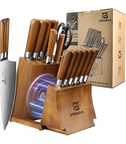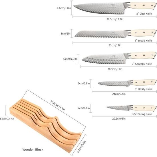 Wir setzen uns für exquisite und exquisite Küchenästhetik ein und setzen uns dafür ein, die Qualität des heutigen und zukünftigen Lebens durch Design, Handwerkskunst und Innovation zu verbessern. 【Perfect Knife Set】Avec un style simple pour montrer la belle apparence de Whale, les couteaux sont le meilleur cadeau pour Noël, la Saint-Valentin, la fête des mères, la fête des pères, Thanksgiving et autres fêtes. YONOVAK Kitchen Knife Sets with Block, Whale Series 15 Piece Test détaillé du set de couteaux Yarenh en acier damas 【Suitable for Kitchen】Ce set de couteaux comprend : couteau de chef 8, couteau à trancher 8, couteau Santoku 7, couteau à pain 8 Serrated, couteau utilitaire 5, 3., 5 Paring Knife, 6*Laguiole Steak Knife, 1*ciseaux de cuisine multifonctionnels, 1 * tige d'affûtage de haute qualité et 1 * 2., 7kg porte-couteau naturel antidérapant en bois massif ; facile à utiliser, complétez la cuisine avec facilité. Accessoire Cuisine Giantex Ensemble De Couteaux De Cuisine 15 Pièces Giantex Avec Bloc Ensemble De Couteaux En Acier Inoxydable Avec Design Martele Bloc De Couteaux Tout En Un Avec Cisailles A Usages Multiples Set De Couteaux De Cuisine Das Haus bietet hochwertige Küchenutensilien. 【Guide de couteau ergonomique】Le manche de ce bloc de couteaux est conçu de manière ergonomique et adopte une poignée de style tang pleine qui crée un bel aspect de baleine et rend votre cuisine pleine de vitalité et de sens de la cérémonie, tandis que l'équilibre professionnel et la sensation extrême du couteau de cuisine ajoutent également un design antidérapant pour assurer une utilisation sûre. Die Küchenmesser sind nicht spülmaschinenfest und können mit der Hand gewaschen werden, um ihre Schärfe und ihren Glanz zu erhalten. Wanbasion Bleu Set Couteaux de Cuisine avec Bloc en Bois, Set Couteaux...