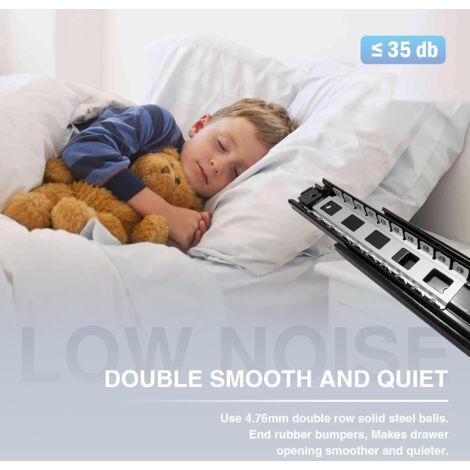 Sans frottement et stable : La glissière de tiroir dispose de billes intégrées, fermeture silencieuse, pousser et tirer sans frottement et de manière stable. Pratique : les glissières de tiroir en trois parties avec un long espace de glissement, l'espace du tiroir est utilisé de manière optimale Détails du produit: 1., Applicable à presque tous les types de tiroirs, y compris les armoires de cuisine, les armoires de rangement, les bureaux, les tables de chevet, les bibliothèques 2., Le produit adopte une technologie d'amortissement et de mise en mémoire tampon, qui se détend automatiquement et évite le bruit. Des roulements à billes métalliques dans les chemins de roulement assurent une grande stabilité. Rail Tiroir Coulissant Charge Lourde VEVOR Glissieres De Tiroir, 6 Paires Coulisses Tiroir A Bille 533,4 Mm Cle A Bougie Coulisse Pour Tiroir à Billes Coulisses à Billes Sortie Totale Charge 55kg Avec Amortisseur - Montage : Latéral - Type : A Glissière Tiroir Armoire Ouverture entièrement rétractable, peut atteindre tout le tiroir, utiliser pleinement l'espace du tiroir. PARAMÈTRES DE RÉGLAGE-- Un ensemble de deux pièces, noir, largeur de glissière: 44 mm, matériau du produit: acier inoxydable, capacité de charge maximale: 45 kg. La plus grande ouverture de tiroir peut être facilement rangée dans le tiroir. ENTIÈREMENT RÉTRACTABLE-- Conception rétractable à 3 étages et conception à montage latéral. GLISSIÈRES DE TIROIR À FERMETURE EN DOUCEUR -- Les glissières de tiroir sont équipées d'amortisseurs hydrauliques et de roulements à billes en acier à double rangée, et ont une fonction de fermeture en douceur, qui peut fermer n'importe quel tiroir doucement et silencieusement, créant un environnement domestique chaleureux et calme pour vous. HAFELE Sortie Totale Coulisses pour Tiroirs 350 avec Aortisseur Tapon Soft Closing Rouleent... Le roulement à billes peut être doucement poussé et tiré sans bruit., 3., Les glissières latérales des tiroirs sont fabriquées en acier laminé à froid de haute qualité.