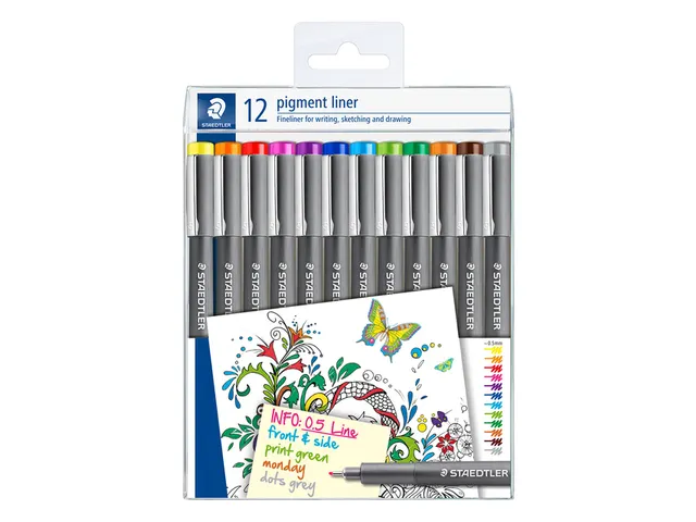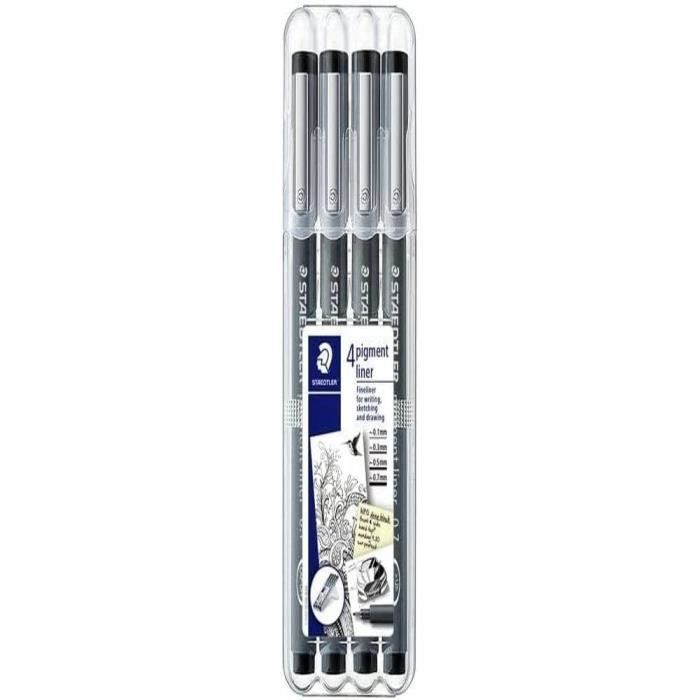 Comprend l'une des tailles de pointe suivantes : 0,3 mm, 0,5 mm, 0,8 mm. Pochette contenant 6 feutres de différentes tailles : 0,05 mm ; 0,1 mm ; 0,2 mm ; 0,3 mm ; 0,5 mm ; 0,8 mm. Ce feutre à pointe calibrée baguée métal est idéal pour l’écriture, les croquis, le dessin, le tracé, l'illustration, le manga, la BD, etc Conçu pour une utilisation avec des règles et des modèles. Stylo Staedtler 308 3 X Stylos Roller Uni-Ball Eye à Pointe Fine UB150 0,5 Mm, Pointe De 0 Feutre Fin Noir 0.5 Comprend les tailles de pointes suivantes : 0,3 mm, 0,5 mm et 0,8 mm. Stylos dotés d’une pointe fine de 0,3 mm Triplus de Staedtler, 40... STYLO-FEUTRE STAEDTLER PIGMENT LINER TECHNIQUE TRAIT 0.1MM ENCRE NOIRE INFALSIFIABLE POINTE CALIBRÉE BAGUÉE MÉTAL Encre pigmentée, indélébile, résistante à la lumière, imperméable et sûre à sec signifie que le stylo peut être laissé ouvert pendant des jours sans sécher Fineliner pour écrire, dessiner et dessiner avec une longue pointe en métal.