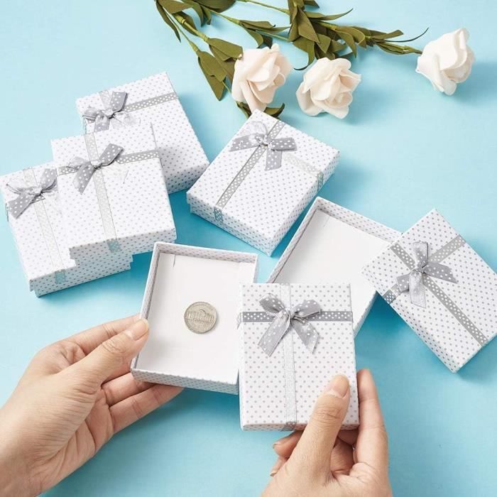 Joli design : un nœud attaché au couvercle le rend mignon et adorable. Lot de 12 boîtes cadeau carrées en carton pour collier, boucles d'oreilles, bagues, boîtes cadeaux en carton rempli de coton (8,9 x 8,9 x 3,2 cm) (rouge... Parfait pour offrir des bijoux en toutes occasions. Contenu de l'emballage : livré avec 12 boîtes cadeaux rouges, couleurs vives et vives. Kurtzy Petites Boites Carton Cadeaux En Papier Kraft Noir Pour Bijoux Boîtes À Bijoux En Carton Avec Mousse Intérieure, Pour Les Matériau : fabriqué en carton de haute qualité et recouvert de papier texturé coloré. Ils sont robustes et durables.