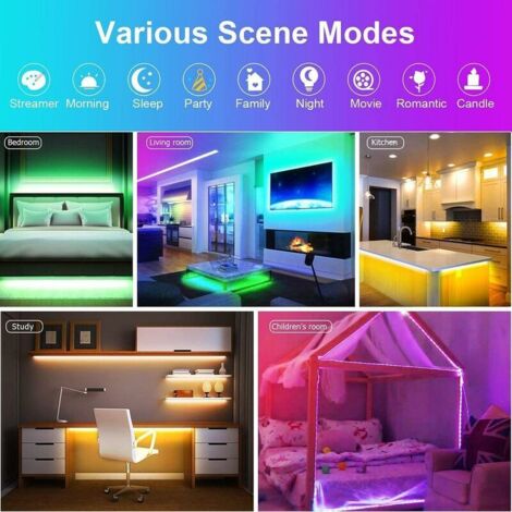 livraison avec télécommande IR, driver, câble d'alimentation, auto-adhésive Répartition uniforme de la lumière Convient pour toute prise standard avec une prise Euro Conformément à la directive européenne sur l'étiquetage de l'efficacité énergétique en raison de ses paramètres, ce produit ne nécessite pas d'informations d'étiquetage énergétique peut être raccourci tous les 10 cm, matériel: résine La bande LED peut être coupée tous les 10 cm. La bande LED RGB est autocollante et a une longueur de 5 mètres. Un revêtement en silicone le protège parfaitement des influences extérieures. Les 150 LED de la... INCLUS - 1 ruban flexible LED RGB de 5 m avec effet de changement de couleur, câble de 1,5 m, driver, télécommande. Elle est dimmable avec la télécommande fournie pour créer l'atmosphère souhaitée. La bande LED flexible revêtue de silicone permet de changer de couleur. La bande LED crée une belle atmosphère dans votre maison. Ruban bande LED avec détecteur de mouvements éclairage Guirlande Lumineuse CLICKSELL-Ruban Led Dimmable Multicouleur De 5M, Bande Led Puissante Pour Decoration Interieure 24w Avec Telecommande Auto Adhesive Ruban Led Cob 5m TENDANCE - bande LED RGB de 5m pour un éclairage tendance de vos meubles et espaces de vie.