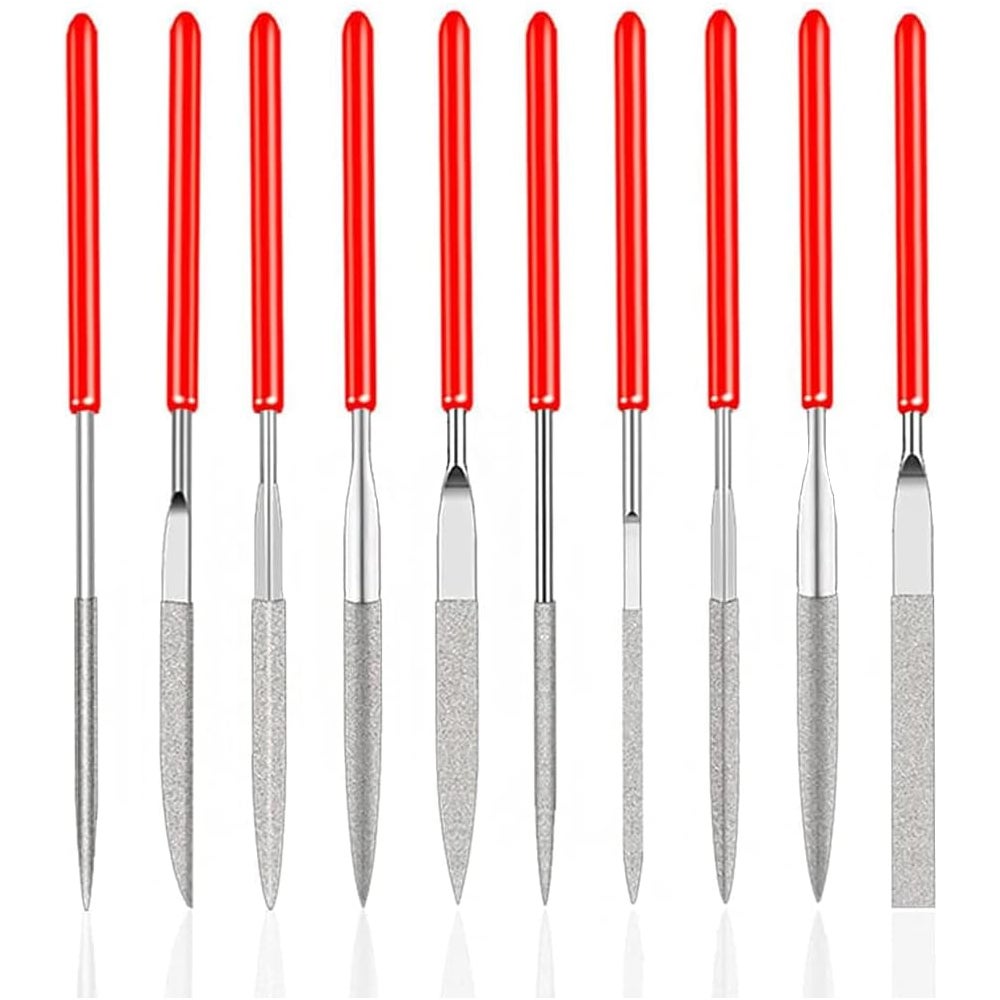 Caractéristiques : 1., Nous vous présentons notre ensemble de limes aiguilles diamant GIONAR de qualité supérieure, méticuleusement conçues pour répondre à vos différents besoins d'artisanat et de façonnage. Ks Tools 20 Limes Diamantées Mini 3x140mm - Set De Limes à Aiguilles Pour Bijoux, Verre, Céramique Limes Miniatures Pour Modelisme Nous vous proposons un choix varié d Revêtement diamant de haute qualité : fabriquées en alliage d'acier durable incrusté de diamants industriels, ces limes garantissent un retrait efficace du matériau, une meilleure efficacité de coupe et une résistance à l'usure, adaptées pour un usage professionnel et amateur. Marque : GIONAR Nom du produit : lot de limes à aiguilles diam Contenu de l'emballage : 20 limes à aiguilles diamantées rouges., Remarque : 1., Choisissez la bonne forme et la taille de fichier en fonction des exigences du travail et du type de matériau. Cet ensemble complet de 20 pièces dispose d'une gamme de formes, y compris rond, carré, triangle équilatéral, et plus encore, assurant la polyvalence pour chaque projet., 2., Fabriquées en alliage d'acier de haute qualité avec revêtement diamant industriel, ces limes à aiguilles offrent une durabilité et une précision inégalées pour les tâches de façonnage, de formage, de sculpture et de gravure. Du meulage fin des modèles et des bijoux au polissage et à la gravure précis, ces limes offrent des résultats exceptionnels sur tous les matériaux naturels., 5., Découvrez la différence avec notre ensemble de limes aiguilles diamant GIONAR – le compagnon ultime pour votre voyage de bricolage. Prise en main et manipulation confortables : les poignées en caoutchouc souple offrent une prise en main sûre et antidérapante, réduisant la pression de la main lors d'une utilisation prolongée, même dans des conditions humides, améliorant la précision et le confort. Chaque lot de dossiers est soigneusement organisé dans 2 pochettes en plastique, avec 10 fichiers par pochette, facilitant le rangement et un accès rapide., 4., Idéales pour les professionnels et les amateurs, nos limes diamant sont parfaites pour la sculpture sur bois, le travail du métal, la fabrication de bijoux, etc. Une pression modérée assure une coupe efficace des documents tout en prolongeant leur durée de vie., 3., Lors de l'utilisation, nettoyez régulièrement les fichiers pour enlever les matériaux accumulés et les débris. Outils Modelisme GIONAR Lot De 20 Limes Diamantées - Limes Aiguilles Précises Pour Lime Diamant Prix M2 20 Pièces Mini Lime à Aiguilles Diamantées 3x140mm Diamant Lime en Métal Mini Jeu de Lime à Aiguille Diamant pour Verre, Céramique, Bois, Carbure, Coupe de... Modélisation de précision et finition de bijoux : avec un diamètre de 3 mm et différentes formes, ces limes aiguilles sont idéales pour les tâches de meulage, de polissage et de gravure précises sur des modèles, des bijoux et d'autres matériaux naturels, ce qui les rend indispensables pour les professionnels et les amateurs.