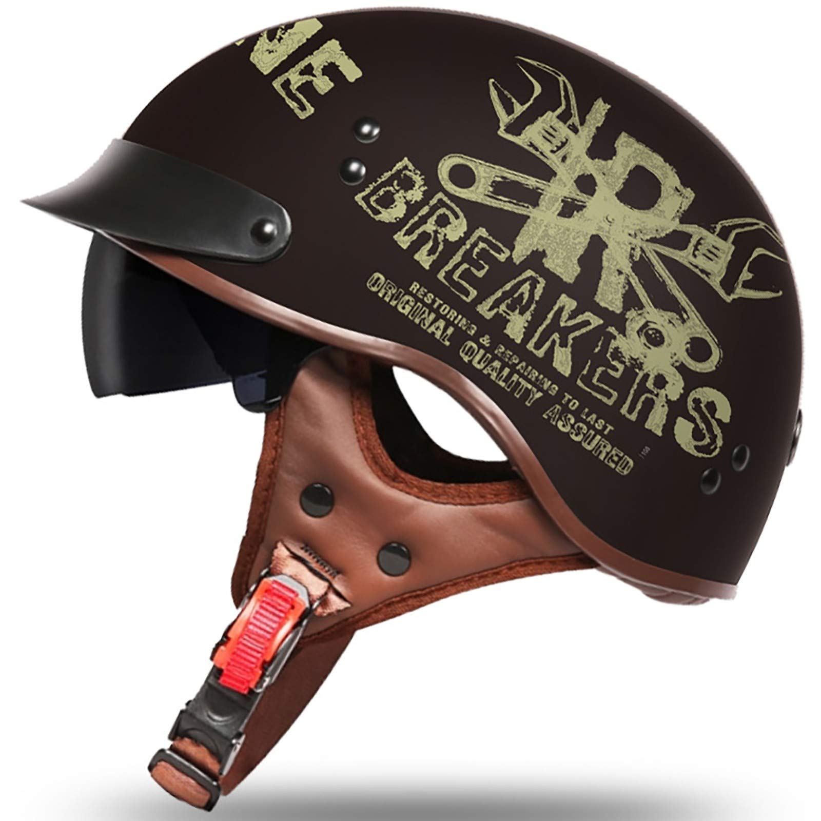 Taille du produit: M (55-56cm), L (57-58cm), XL (59-60cm), XXL (61-62cm) Caractéristiques du casque : ★ Casque en fibre de carbone: résistance aux chocs, résistance à la chaleur, résistance aux basses températures ★ Couche d'amortissement EPS haute densité: forte résistance aux chocs, rendant la conduite plus sûre ★ Doublure confortable pour la peau: douce et confortable, fraîche et respirante, gardez la tête au frais ★ Système de ventilation: ventilation multidirectionnelle ★ Lentille cachée intégrée Passez la certification de sécurité DOT, ECE Noter 1., veuillez prévoir 1 à 3 cm comme plage d'erreur pour la mesure manuelle., 2., L'affichage des couleurs fera une petite différence car les différents moniteurs et lumières, merci de votre compréhension!, Emballage inclus 1 * casque Casque jet léger et fin gris mat - taille S - adapté à l'exigence du... ★ Couche tampon: couche tampon EPS haute densité, en cas d'urgence, réduit l'impact de la tête, protégeant efficacement la tête. Casque Moto Demi-Ouvert Homologué ECE Casque Demi Jet Moto Casque Coupe-Vent Homme Et Femme 3/4 Demi-Casque Harley Vintage Casque Style Rétro Avec Visière Jugulaire Ajustable Boucle ★ Casquette d'activité: conception à trois boutons, facile à démonter, bonne ténacité, pas facile à casser. Coque ABS légère intérieur EPS confortable et lavable. Visière solaire réglable incluse. Tailles S à XXL (57-64cm). Parfait pour scooters, customs et balades... Vintage Demi Casque de Moto Jet,Casquesde Moto Harley Rétro ECE/DOT Homologué Scooter Braincap Chopper Cruiser Racing Mofa Pilote Vespa Helmet Avec Visière Pour Adulte Q,XXL ★ Lunettes de soleil de protection solaire: non seulement fraîches, mais également exemptes de soleil et d'éblouissement pendant la journée. ★ Demi-casque Carbon Bullet Cruiser DOT: Fibre de carbone, après de nombreux tests stricts, solide et durable, durable.