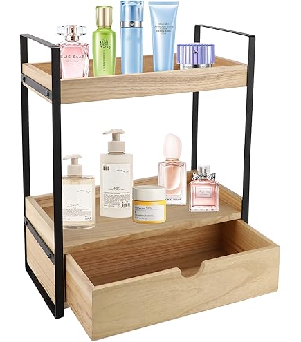 Ukonvi Organiseur De Salle De Bain à 2 Niveaux Avec Tiroir, étagère De Comptoir En Bois