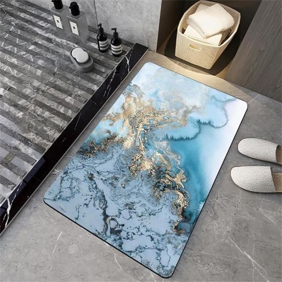 Vous pouvez nettoyer facilement le tapis de bain en utilisant un chiffon humide ou une brosse, puis rincer à l'eau, sans risque de décoloration, de peluches ou de boulochage. ce n'est pas seulement un tapis de bain. Facile à Nettoyer: Ce tapis est facile à frotter et à nettoyer, il suffit d'essuyer le tapis bain avec un chiffon humide ou de le rincer avec une pomme de douche pour que votre tapis de salle de bain ait l'air tout neuf. Tapis Absorbant Leroy Merlin Chickwin Tapis De Bain Ovale Absorbant Diatomite, Couleur Unie Tapis De Salle De Bain Sechage Rapide Tapis Bain Antidérapant Tapis Salle De Bain Tapis De Sortie De Douche (Bleu,60x90cm Tapis Diatomite Salle De Bain La surface du tapis de bain est fabriquée à partir d'un matériau en terre de diatomée, qui présente une excellente absorbant d'eau, permettant ainsi un séchage rapide des pieds après la douche. Absorbant: Le tapis de bain absorbant a une couche d'éponge absorbante et de terre de diatomée au centre, qui peut absorber rapidement l'eau lorsque vous sortez de la douche, le tapis de sol de salle de bain peut rapidement absorber l'eau qui goutte et protéger le sol de l'humidité. Finies les tapis en tissus mouillés et les risques de glissade en sortant de la douche ! il peut être utilisé comme cadeau de pendaison de crémaillère pour vos amis. Largement Répandu: Ce tapis n'est pas seulement pour la salle de bain, vous pouvez l'utiliser dans n'importe quel endroit où il peut être facilement mouillé, son design léger le rend parfait pour une utilisation comme paillasson, tapis de cuisine, tapis devant l'évier, tapis de gamelle pour animaux domestiques, etc. Douce & Séchage Rapide: La vous donne une sensation particulièrement agréable lorsque vous marchez pieds nus, et les nombreux pores minuscules du tapis de bain permettent à l'eau de s'évaporer rapidement à l'air naturel, de sorte que le tapis de bain sèche rapidement et que l'eau ne s'accumule pas. Tapis de Bain Séchage Rapide, Tapis Salle de Bain Antidérapant et Ultra Absorbant pour Sortie de Tapis de salle de bain antidérapant 40 x 60 cm, super absorbant, séchage rapide... Découvrez le Tapis de Bain QuickClean, une révolution pour le confort et l'hygiène de votre salle de bain. Vous pouvez l'utiliser partout où vous êtes mouillé ou si vous souhaitez ajouter de la chaleur à vos pieds.