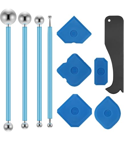 Facile à Utiliser: Calfeutrage outil de scellage conception est simple et la spatule est marquée avec des mesures de rayon précises elle peut être rapidement utilisée et remplacée sans connaissances professionnelles pendant le processus de grattage, ce qui rend votre travail de coupe plus fluide elle convient très bien aux novices et à la décoration de la maison 9 Pièces Lisseur Joint Silicone de Finition Lissage Kit de Calfeutrage... Outils Ensemble – Lisseur Joints Kit Boule En MéTal Outil D'étanchéIté Professionnel Pour Bordure Salle Bain Cuisine Decoration Sculpture Argile Bleu 4 Pieces 78131826 Matériau Haute Qualité: Kit de joint pour carrelage fabriqué en plastique abs et en acier au carbone de haute qualité, il est solide et résistant à l'usure, difficile à déformer et à casser, et a été poli pour avoir une surface lisse sans bavures, qui ne vous rayera pas les mains et est facile à nettoyer que vous pouvez le réutiliser Lisseur Joint Alnicov Kit De Grattoir à Outils 9 Pièces Ensemble De Lisseur De Joints Extracteur De Boule En Métal Joint De Calfeutrage En Silicone Plus Lisse Pour Carrelage De Cuisine De Salle De Lisseur De Joint Silicone Matériau Haute Qualité: Kit de joint pour carrelage fabriqué en plastique abs et en acier au carbone de haute qualité, il est solide et résistant à l'usure, difficile à déformer et à casser, et a été poli pour avoir une surface lisse sans bavures, qui ne vous rayera pas les mains et est facile à nettoyer que vous pouvez le réutiliser Paquet Complet: Vous recevrez 5 pièces outil de calfeutrage bleu différentes formes, 1 morceau grattoir colle manche noir et 4 tailles de boules métalliques magnifiquement cousues, spécialement conçues pour différents espaces coin accessoires sont complets et peuvent être sélectionnés et appliqués manière flexible Résultat Parfait: Outil de finition de calfeutrage doté de biseaux faciles à glisser et disponible en différentes tailles et styles, vous pouvez trouver la bonne taille pour obtenir la finition parfaite sur les joints, bords et coins en silicone pour votre façonnage, réparation, retrait et plus encore