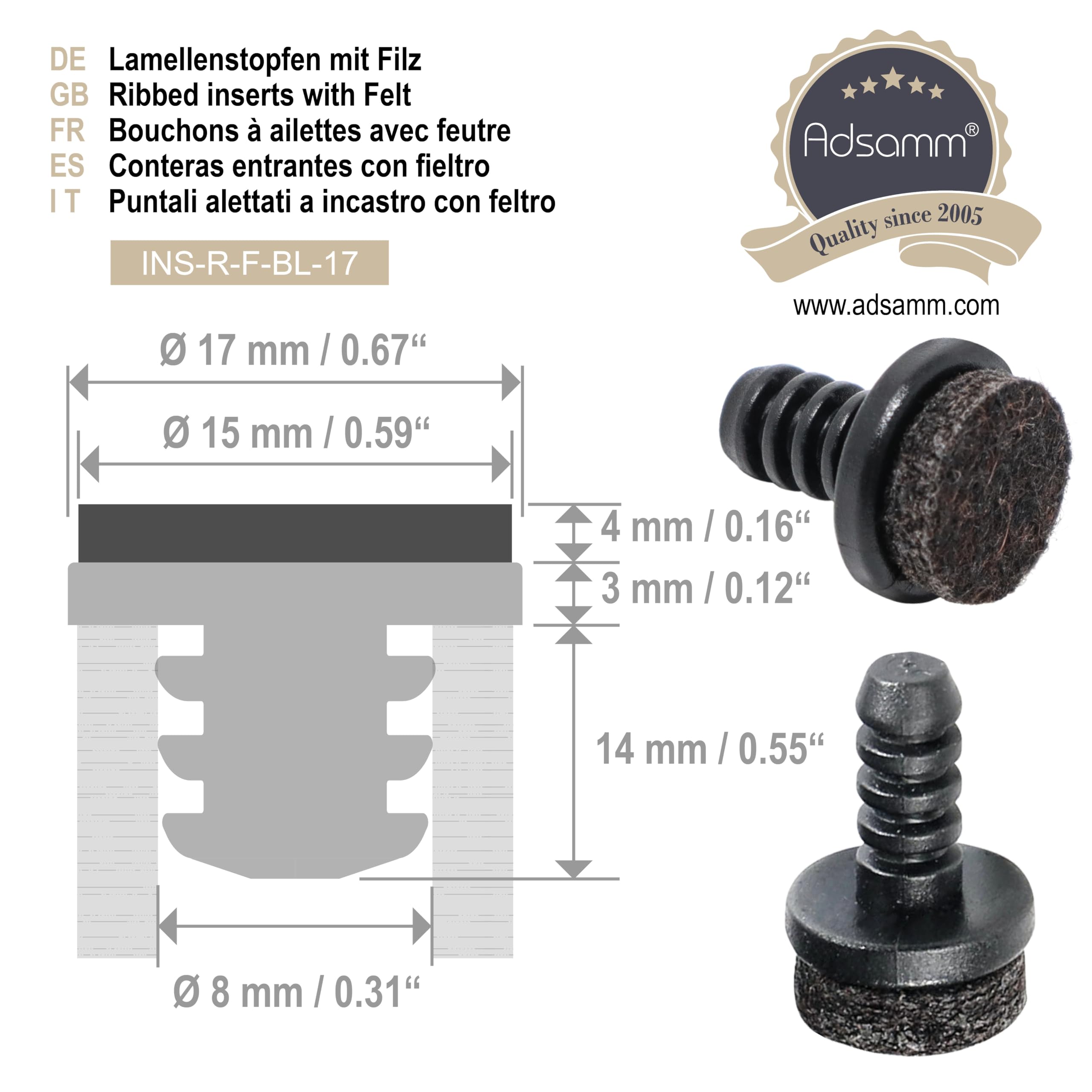 Patins de meubles ou bouchons en plastique avec feutre pour fauteuil tubulaire de qualité supérieure de la marque Adsamm. Protection efficace des meubles et sols conçue pour la maison, bureau, l'hôtellerie, cabinets, hôpitaux, résidences, maternelles, écoles, etc. - Contenu de la livraison : lot de 32 patins en feutre pour meubles tubes ronds Adsamm - Qualité depuis 2005 Patins pour meubles ou bouchons en plastique avec feutre pour fauteuil tubulaire de qualité supérieure de la marque Adsamm. Les bouchons à lamelles sélectionnés avec feutre ont les caractéristiques suivantes : - Forme : carrée - Couleur : noir - Dimensions 16 x Patin glisseur en teflon avec vis - 22 mm - rond Patins pour Chaises et autre meuble A99... 32 X Embouts Insert à Ailettes Avec Feutre - Noir - 5 - 6 Mm - Rond - À utiliser sur de nombreux sols tels que le parquet, le carrelage, le stratifié, le PVC, le linoléum, la pierre naturelle lisse, le marbre, le sol en vinyle, le liège, etc. INOFIX - Patin glisseur pour meuble 25mm gris blister - Bricolage Polyvalent pour protection et mouvement facile et silencieuse des meubles moyen lourds ou légères et comme patins des meubles, chaise glisse, protection des sols. Ø 18 - 20 mm / noir / rond / Patin en plastique avec feutre de qualité supérieur, pour emboutir dans tubes ronds. Fabriquées en Europe, 1000-fois couronnées de succès!