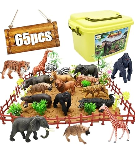 Le forfait comprend: 32 mini figurines d'animaux de la forêt en vrac, 1 arbre, 4 herbes, 16 clôtures. 11 animaux Sauvages jouets en plastique pour jouer - figurines safari RETO 4. ¿QUE TIPOS DE ITEMS CONOCES Playmobil Ferme OOTSR 24Pcs Mini Animaux De Ferme En Plastique Et Animaux De Jungle Sauvage Jouets Chiffres Pour Enfants Apprendre Éducatif Ensemble Jeu Fête Favors Sac Remplisseurs Cadeaux Pour Garçons Et Filles Ferme Enfant Les figurines d'animaux sont idéales pour les décorations de fêtes d'enfants, les décorations de gâteaux d'animaux, les décorations de cupcakes, les décorations de fête prénatale, également d'excellents sacs-cadeaux pour les anniversaires, Halloween, les fêtes de Noël Mini Figurines d'animaux Sauvages Zoo Animaux Playset Gâteau Toppers pour Garçons Filles Anniversaire Faveurs. Item Name ELECLAND 53 Pcs Animaux de la Jungle... Matériau de qualité : l'ensemble de jeu pour animaux est fabriqué en plastique de qualité, durable et léger, la peinture riche rend l'animal plus réaliste, c'est un cadeau idéal pour les enfants et les amis Des figures d'animaux de la jungle réalistes contribuent à l'éducation des enfants. Petite taille : chaque mini figurine d'animal mesure entre 5 et 7 cm, parfait pour les cadeaux de fête, les décorations de gâteaux, les sacs de fête, les récompenses de classe et plus encore 16 figurines d'animaux de safari : éléphant, tigre, girafe, zèbre, ours marron, orang-outan, lion, rhinocéros, ours polaire, bœuf, hippopotame, ours noir, pa