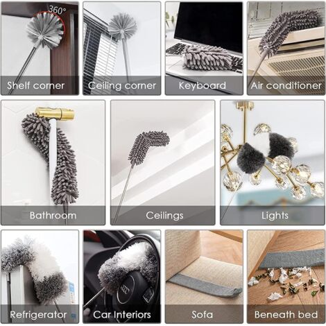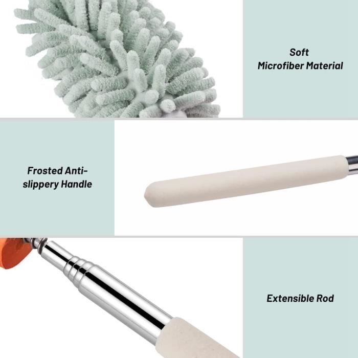 🧹【Ensemble de dépoussiéreur】 1 * tige télescopique en acier inoxydable, 1 * brosse à épousseter en chenille, 1 * brosse à crevasse, 1 * brosse à épousseter en microfibre, 1 * mini dépoussiéreur, 5 pièces au total. Plumeau Télescopique avec 2 Têtes de Plumeau, Plumeau Lavable en... Livré chez vous au meilleur prix : HUIEYE 5 PièCes Plumeau PoussièRe Microfibre avec PoignéE en Acier Inoxydable Lavable RéUtilisable Nettoie Coins PoussièRe Lo 🧹【Facile à nettoyer et à ranger】 Après avoir nettoyé la pièce, il suffit de tourner la vis dans le sens antihoraire, de retirer la tête de brosse et de rincer la brosse en fibre à l'eau tiède. La capuche en microfibre est grande et facile à plier dans différents angles. 🧹【Rétractable et Pliable】Le dépoussiéreur rétractable est long et rétractable. 🧹【Rotation à 360°】Le dépoussiéreur télescopique en toile d'araignée peut pivoter à 360° et la tête en microfibre peut être pliée et flexible. Les brosses à poussière rétractables sont idéales pour nettoyer les fissures, les climatiseurs, les téléviseurs et plus encore, ainsi que pour enlever la poussière des canapés, des tables, des plafonds, des stores, des ventilateurs de plafond, des garnitures et des étagères La longueur maximale de la perche télescopique est de 250 cm, qui peut être pliée à n'importe quel angle selon vos besoins, vous permettant de nettoyer n'importe où dans la maison sans grimper aux échelles pour atteindre les coins éloignés Et vous n'avez pas à vous soucier de rayer les murs, les plafonds, les fenêtres et les canapés Poignée Meuble Plumeau Poussière, Plumeau Microfibre Avec Poignée En Acier Inoxydable, Plumeau Extensible De 30 à 100 "pour Nettoyer Les Ventilateurs De Plafond, Les Stores, Les Plinthes, Les Voitures Produits Et Accessoires De Nettoyage Protéger les membres de la famille] Télescopique Plumeau Poussière protège efficacement les personnes âgées et les enfants avec une longueur d'extension maximale de 256 cm / 100 pouces. Vous pouvez nettoyer sans vous tenir debout sur une chaise dangereuse lorsque vous l'utilisez. C'est la brosse de nettoyage la plus simple à utiliser. prenez soin de votre famille de cette façon... 5 Pcs Plumeau Poussière Telescopique, Plumeau Pliable Lavable, Plumeau