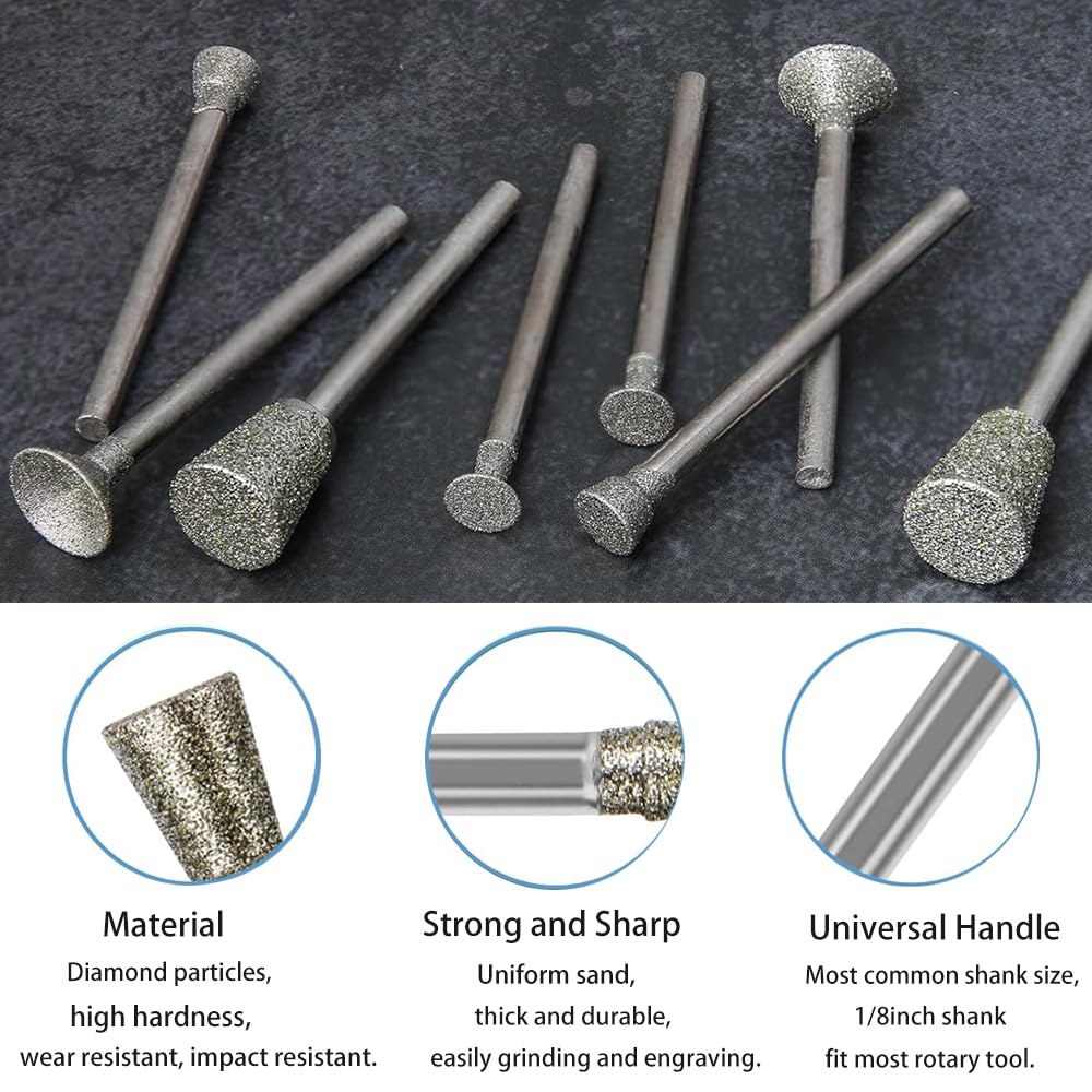 La dureté extrême des diamants confère à cette tête de meulage une excellente résistance à l'abrasion et la capacité de résister à une utilisation prolongée. Vous pouvez faire quelques créations de bricolage à la maison ou le travail dans un lieu de travail, ce foret diamant répondra à vos besoins sans les tracas d'outils incompatibles., 4., Le foret diamant dispose d'une large gamme de matériaux tels que la pierre, le verre, la céramique, le carrelage, la brique, la fibre de verre et les roches. Et il est parfait pour les loisirs créatifs, la modélisation artisanale, les travaux de précision détaillés, le polissage, le meulage, la sculpture, etc. Lot De 20 Fraises Diamantées Tige 1/8 Compatible Avec Dremel Pour Sculpture Gravure Meulage Polissage De Pierre Roche Verre Ceramique 90244910 Lot De 52 Fraises Diamantu00e9es Compatibles Avec Les Embouts Abrasifs Dremel Avec Tige De 3 Mm - Pour Sculpture Sur Pierre, Verre, Cu00e9ramique, Meulage... Fraise Diamant Lot De 20 Fraises Diamantées Tige 1/8" Compatible Avec Dremel Pour Sculpture Gravure Meulage Polissage De Pierre, Roche, Verre, Céramique Fraise Diamant Dremel Avec 8 formes et tailles différentes, convient pour l'entretien quotidien au travail professionnel, du travail fin aux grandes surfaces.