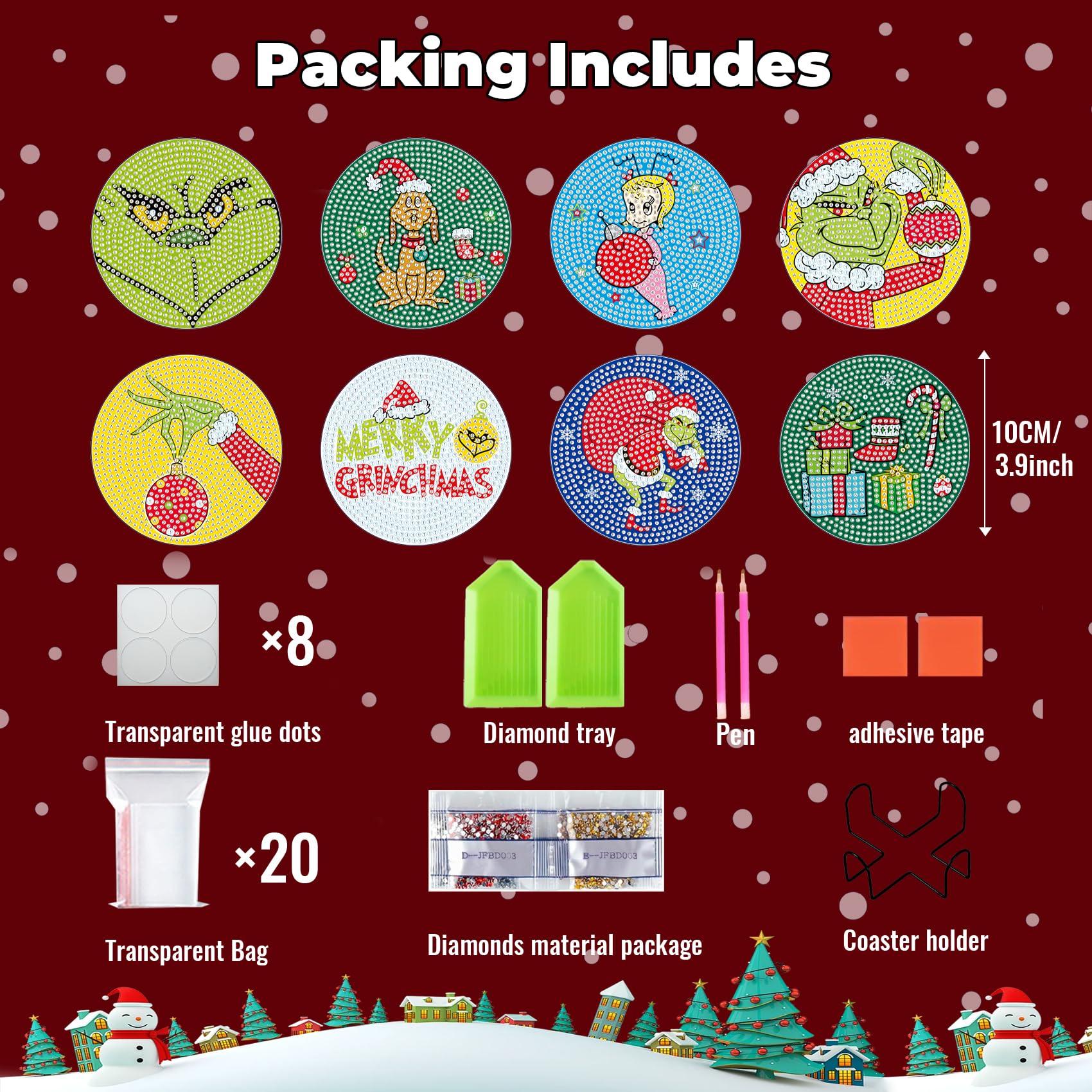 ● Lisez la liste de canevas pour trouver le numéro de foret. Il y a plus de 10 % de perles de perçage dans chaque section, sans vous soucier de manquer ou de ne pas en avoir assez. Déchirez le film partiel et collez le diamant sur la toile selon le numéro correspondant. Le kit de dessous de verre est parfait pour tous ceux qui aiment le bricolage. En outre, ce sera un excellent cadeau pour les amateurs de peinture au diamant. [Service après-vente]La qualité est notre avantage, mais nous accordons plus d'attention à l'expérience client. Si vous avez des questions sur les diamants ou accessoires manquants dans notre kit, veuillez nous contacter par e-mail dès que possible Lot De 8 Dessous De Verre D'art Diamant De Noël Avec Support, Plateau De Service La base en liège attachée offre une prise en main antidérapante, tout en appliquant un scellant de peinture diamant garantit leur brillance durable et leur beauté intacte au fil du temps. Diamants colorés et brillants (20 % de points de diamant supplémentaires). Il s'agit d'un produit de peinture diamant à faire soi-même, non fini, vous devez le terminer vous-même. 【Service après-vente】La qualité est notre avantage, mais nous accordons plus d'attention à l'expérience client. Kits d'art diamant pour adultes : kits de peinture diamant pour adultes comprenant : 8 sous-verres de peinture diamant, 8 tampons en liège... Haute qualité et durabilité : fabriqués à partir de bois épais, ces dessous de verre garantissent durabilité et longévité. Le produit ne contient pas de cadre. C'est juste une toile. Guillaume Corneille (1922-2010) Lot de 8 sous-verres Chats et Oiseaux En cas de réduction de la viscosité, ne pas exposer trop de surface brute de la toile. Kits d'art diamant pour adultes - Dessous de verre d'Halloween : kits de peinture diamant pour adultes comprenant : 8 sous-verres de peinture diamant, 8 tampons en liège, 1 support de sous-verre, 1 lot de points de diamant colorés, 1 colle d'argile, 1 stylo de peinture diamant, 1 plateau à points diamants. ✔ Plein de plaisir : pas besoin de compétences artisanales, facile à utiliser, adapté pour les débutants. Matériaux : strass + bois. Excellent cadeau fait main : l'art diamant est un cadeau idéal pour les débutants, vous pouvez l'offrir comme cadeau à votre famille, vos amis, vos collègues à Noël, Thanksgiving, un anniversaire, etc. Facile et attrayant pour tous les âges : les chiffres faciles à lire et les perles aux couleurs vives peuvent facilement vous aider à fabriquer ces dessous de verre à pois en diamant. Si vous avez des questions sur les diamants ou accessoires manquants dans notre kit, veuillez nous contacter par e-mail dès que possible.