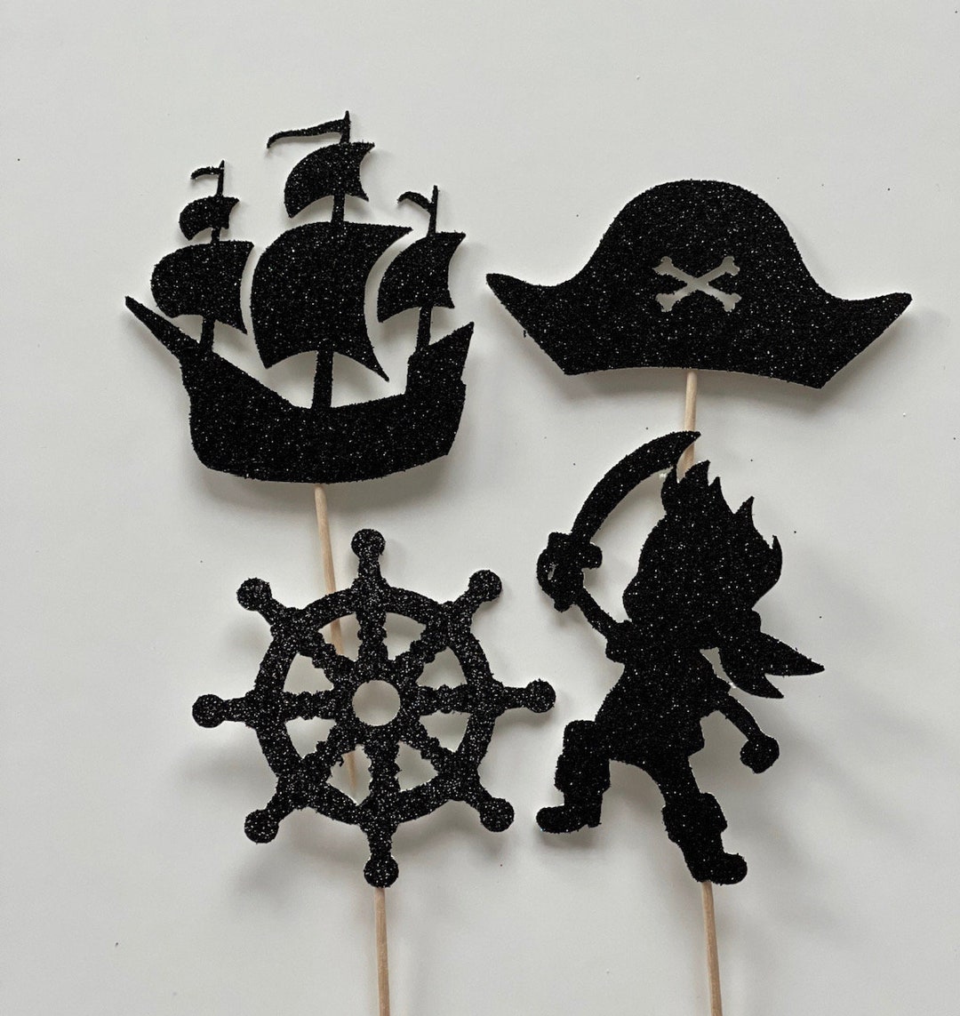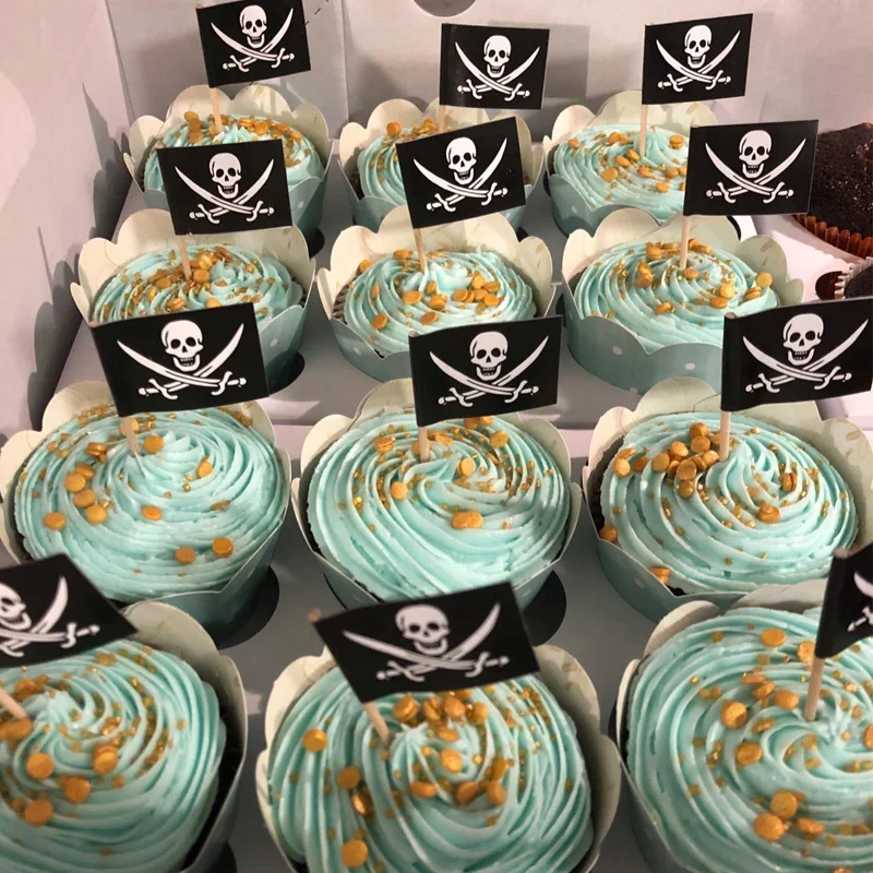 [Conception d'impression recto verso] Chaque drapeau noir de ces décorations pour cupcakes est imprimé avec un motif pirate des deux côtés, attrayant...