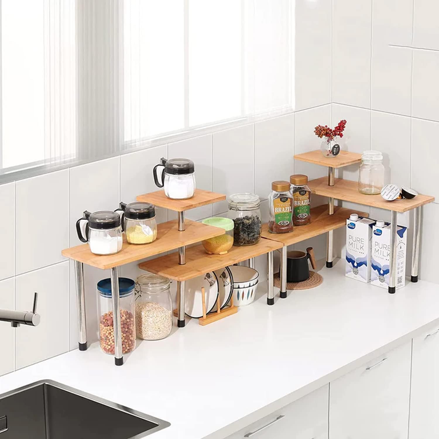 Autres accessoires nécessaires., Remarques : 1., Veuillez vérifier soigneusement la taille avant de commander., 2., Veuillez suivre le plan d'installation pour assembler ce produit., 3., Les mesures étant prises à la main, les tailles indiquées peuvent varier de 1 à 3 cm. Caractéristiques : Couleur : couleur bois Forme : rectangulaire Style : minimaliste Matériau : planche en bambou, acier inoxydable, plastique Procédé : peinture par pulvérisation., Assemblage requis : oui. Descriptif technique · Dimensions (L x p x h) : Dimensions du produit (L x l x h):18 x 43 x 38 cm; 3 kilogrammes · Couleur(s) : Couleur:Bambou Naturel Type de montage : plateau de table Capacité de charge : 12 kg (niveau moyen et inférieur), 8 kg (niveau supérieur). Taille de la planche centrale et inférieure : 43,18 x 17,78 cm. Utilisation maximale de l'espace de rangement : la conception à 3 niveaux utilise bien l'espace vertical, et les marches du milieu et du bas peuvent être tournées à 360 °, de sorte que vous pouvez placer l'étagère d'angle à différents endroits pour utiliser différents espaces tels que les coins ou les surfaces planes avec un petit espace de rangement, tout en offrant 3 niveaux d'espace de rangement, de sorte qu'elle peut contenir plus d'objets. Hauteur totale du produit : 38,86 cm. ZHWS Étagère d'angle pour comptoir de salle de bain – Organisation de salle de bain en bambou à 3 niveaux, étagère à épices, organisateur de maquillage, étagère peu encombrante, cuisine, bureau, salon Matériaux de qualité supérieure : l'étagère d'angle de couleur bois est fabriquée en bambou durable et en acier inoxydable et offre une longue durée de vie grâce à ses pieds en acier inoxydable stables. Utilisation polyvalente : que ce soit comme étagère murale de cuisine ou étagère d'angle de salle de bain, cette étagère à épices couleur bois peut être utilisée partout et assure l'ordre et la clarté grâce à son design ouvert. Contenu de la livraison : 1 étagère à épices à 3 niveaux., 1 diagramme en anglais. Etagere D'angle Conforama Étagère Douche Télescopique, Étagère D'Angle De Rangement Salle De Bain étagère Pour épices De Jardin FEZIBO Bureau Assis Debout Angle Électrique - 160 * 120 c Bande LED 3... ✅ Design peu encombrant : avec ses trois niveaux et son orientation réglable, l'étagère à épices s'adapte parfaitement à n'importe quel coin et offre beaucoup d'espace de rangement pour les épices et plus encore. Hauteur de l'étage moyen : 28,96 cm.