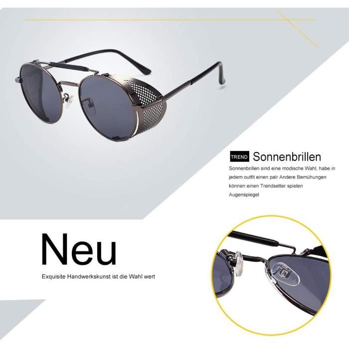 Remarque : mesurez la taille portable et commandez judicieusement ! Taille des lunettes de soleil : si vous avez des questions sur ces lunettes de soleil, veuillez nous contacter immédiatement ! Lunette De Soleil Ronde Homme Besbomig Lunettes De Soleil Homme Femme Polarisée Steampunk Lunette Et Accessoires Vintage Ronde Cadre Métallique UV400 Protection Lunettes De Soleil Polarisées Dimensions approximatives : largeur du cadre 129 mm, largeur du verre 46 mm, hauteur du verre 47 mm, largeur du nez 24 mm, longueur du cadre 132 mm. Lunettes de soleil à matériaux de qualité supérieure : les lunettes de soleil noires polarisées pour femme ont un cadre en métal avec des manchons en caoutchouc à l'extrémité des branches métalliques pour augmenter le confort. Verres de protection épais polarisés : nos lunettes de soleil rétro rondes et épaisses sont fabriquées en matériau TAC, un matériau incassable de haute qualité, ultra léger et fin, bien visible, résistant à l'eau et à l'huile, durable et résistant aux rayures. Type : rond. (Veuillez vous assurer de choisir la bonne taille pour vous, si elle est trop grande ou trop petite, elle n'est pas recommandée) Ensemble de lunettes de soleil de vélo style vintage pour un look magnifique. Vêtements Vêtements Code EAN: 6263078993856 Mode et Textile / Taille: Unique Perception sensorielle / Coloris: Multicolore Rubrique principale Vêtements: Accessoires de mode En-tête / Fabricant: sweetwe Public / Genre: Homme Domaine d'utilisation: Ville Vêtements / Accessoire vêtement / Type: Lunette de soleil Origine_import: All-in-one Titre: Lunettes de soleil rondes polarisées pour hommes Lunettes de soleil Steampunk, gothique, rétro, Vintage, et à la mode pour femmes Perception sensorielle / Coloris: Multicolore Mode et Textile / Taille: Unique EAN_Fiches_Privées: 6263078993856 Lunettes de soleil pour Homme Polarisées Rectangulaires Lunette Femme Ensemble D'accessoires Hippie 3 Pièces : Collier Arc-En-Ciel (7 Cm), Lunettes Rondes Vintage (5 Cm) Et Couronne De Fleurs Ajustable - Idéal Pour Festivals... Avec l'ajout spécial de charnières à ressort flexibles améliorées sur le cadre en métal, elle peut être ajustée d'environ 20° et permet une contraction flexible. Matériau du cadre : polycarbonate. Lunettes de soleil rondes tendance et élégantes : le design unique des branches de nos lunettes de soleil pour femme donne une forme lisse, élégante et unique. Le design flexible de charnière en métal offre des branches réglables pour s'adapter à différentes tailles de tête et formes de visage. Lunettes de soleil vintage rondes punk unisexes, monture métal colorée, verres PC UV400, design rétro, personnalisation logo possible