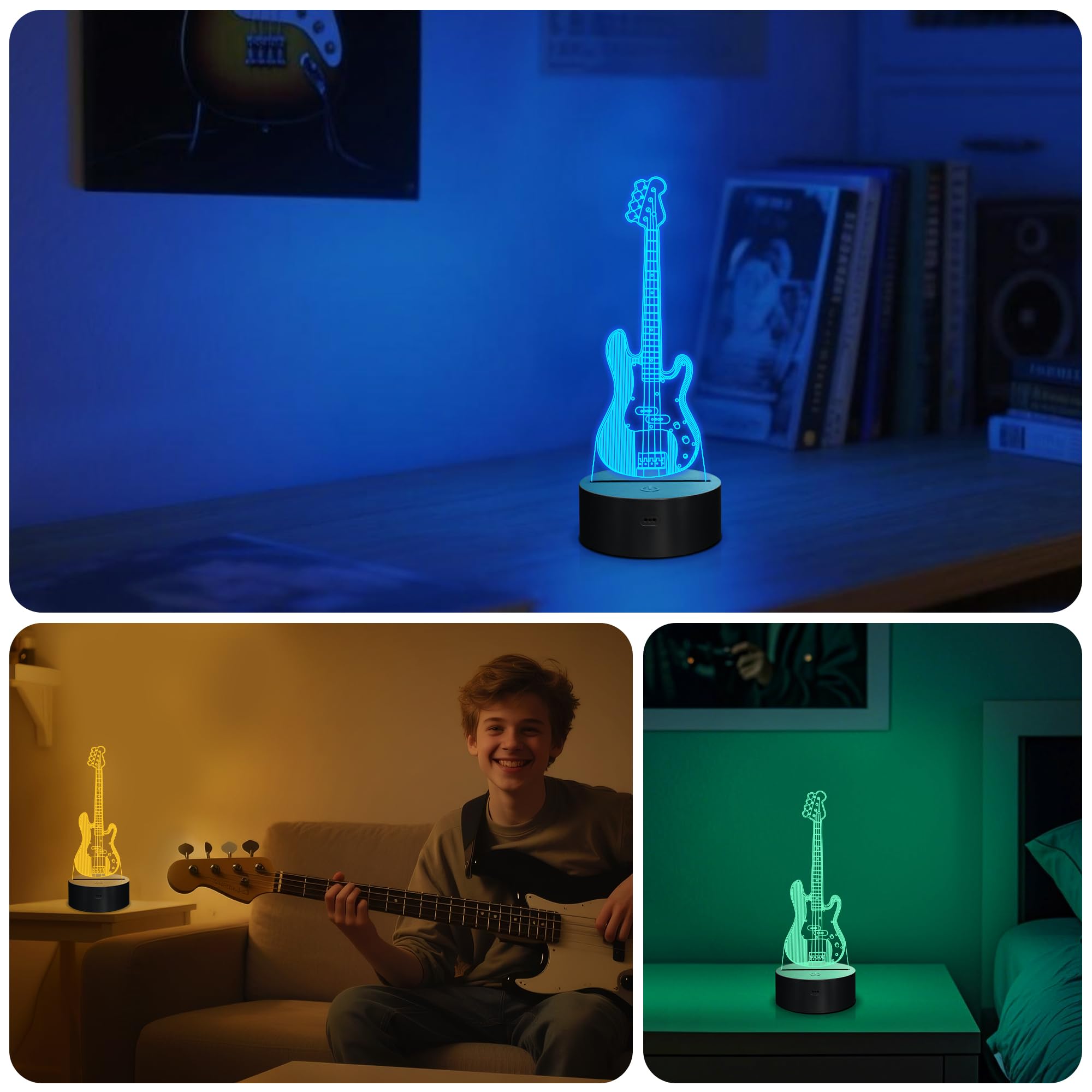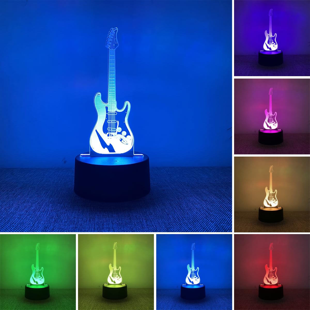 【7 Couleurs】 : La lampe décorative offre 7 couleurs vives et dynamiques grâce à un bouton tactile. 【Cadeaux】 : 1 socle, 1 plaque en acrylique, 1 câble USB, 1 manuel d'utilisation. Lampe Intelligente Lampe De Chevet Sans Fil Lampe De Chevet Reveil Haut Bouton tactile de cette veilleuse guitare 3D peuvent contrôler la lumière, facile à utiliser. Facile et pratique 🎸Le lampadaire guitare 3D peut être utilisée dans la chambre à coucher, la chambre d'enfant, le salon, le bar, les hôtels, la boutique, le café, le restaurant etc. comme lumière décorative Elle peut également être offerte comme cadeau d'anniversaire, cadeau de Thanksgiving, cadeau de pendaison de crémaillère, cadeau de fin d'études, cadeau de Noël, à des enfants, des bébés, des tout-petits et des amis. Cadeau Fille Ado SISYS 3D Lampe Illusion Optique LED Veilleuse Optiques Lampe De Nuit De Chevet 7 Couleurs Tactile Chambre Table Art Déco Enfant Lumière De Nuit Avec Câble USB, Guitare Deco Guitare C'est la veilleuse idéale pour accompagner votre enfant dans ses rêves. Sa lumière chaleureuse les rassure et les aide à s'endormir plus facilement. 【Économie D'énergie】 : la lampe enfant chambre diffuse une lumière douce et stable qui protège mieux les yeux des enfants. Lampe de chevet pour enfant, lampe de chevet, veilleuse à atmosphère domestique, cadeau, rechargeable, pour décoration de chambre. €3.67-4.13. Commande...