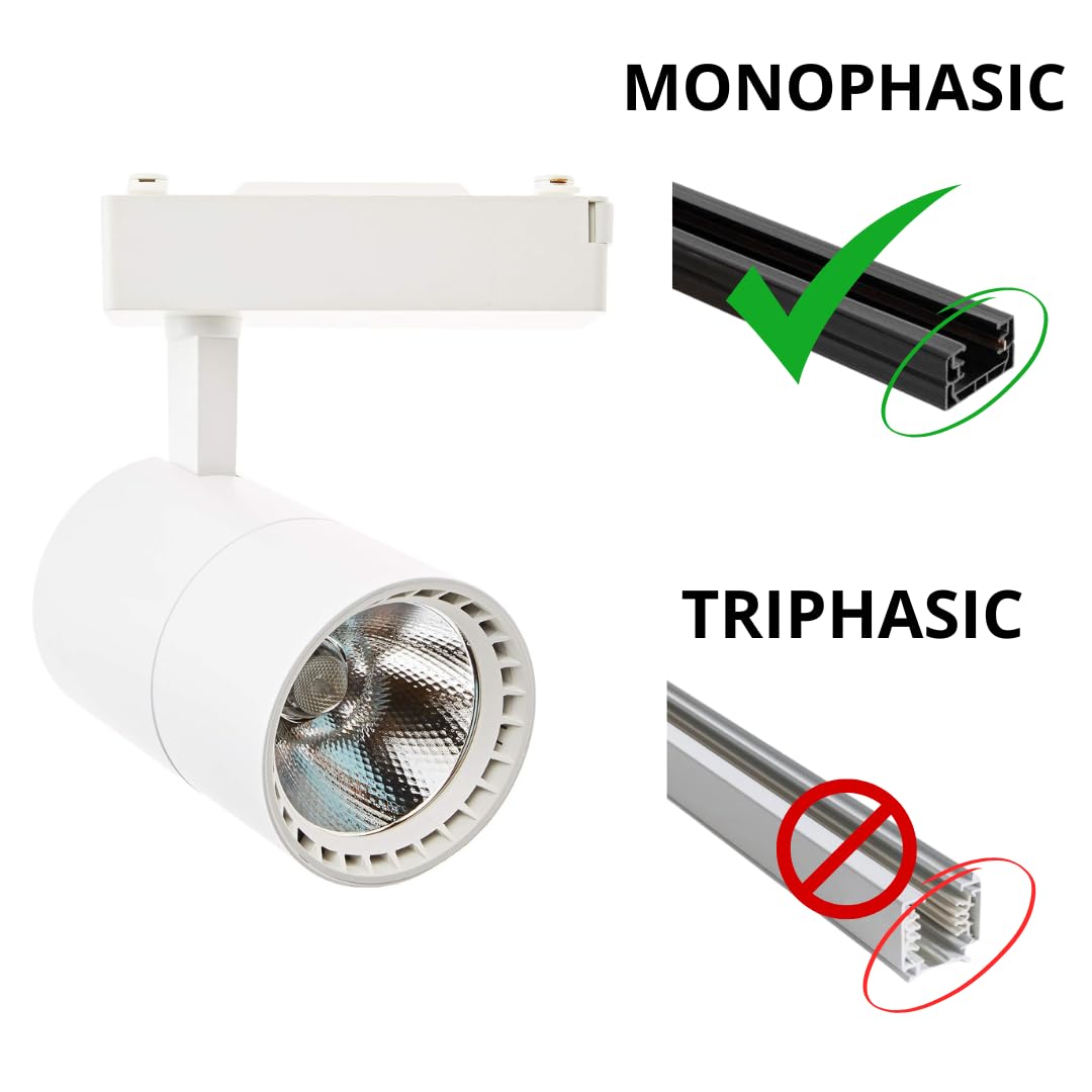 Les LED COB sont une technologie d'emballage dans laquelle plusieurs LED sont placées ensemble sur un seul PCB, comme s'il s'agissait d'un seul point d'éclairage. L'éclairage sur rail est de forme cylindrique et le conducteur est installé dans la base qui est attachée au rail de manière à ce qu'il ne soit pas visible. La lumière blanche froide est la plus blanche des nuances habituelles. C'est le ton de 6000K. Durée de vie estimée : 35 000 h Éclairage modulable, installation facile, design moderne et durable. Cela le rend adapté à différents styles et espaces de décoration. Ce type d'éclairage permet une flexibilité importante, car les projecteurs peuvent être ajustés, mobilisés et repositionnés le long du rail pour diriger la lumière vers des zones spécifiques selon les besoins. Au lieu d'avoir plusieurs LED individuelles, COB place plusieurs puces LED sur une seule carte, permettant une répartition uniforme de la lumière et un rendement lumineux plus élevé. [SYSTÈME DE RAILS] L'assemblage se fait sur des rails électrifiés. [MONOPHASÉ] Le terme « monophasé » fait référence au type de système électrique dans lequel le projecteur fonctionne. [PUISSANCE] Le spot a une puissance de 30 W et fonctionne à une tension de 220 V. [DESIGN] Le spot présente un design élégant et minimaliste, lui conférant un aspect moderne et discret. 10x Spot De Plafond Sur Rail Led 30W, Blanc Neutre 4200K, 3000 Lumens JANDEI – Pack x4 Panneau LED Rétroéclairé, diensions 60x60c... Spot LED sur Rail 30W 80° SMD Triphasé BLANC - Blanc Froid 6000K