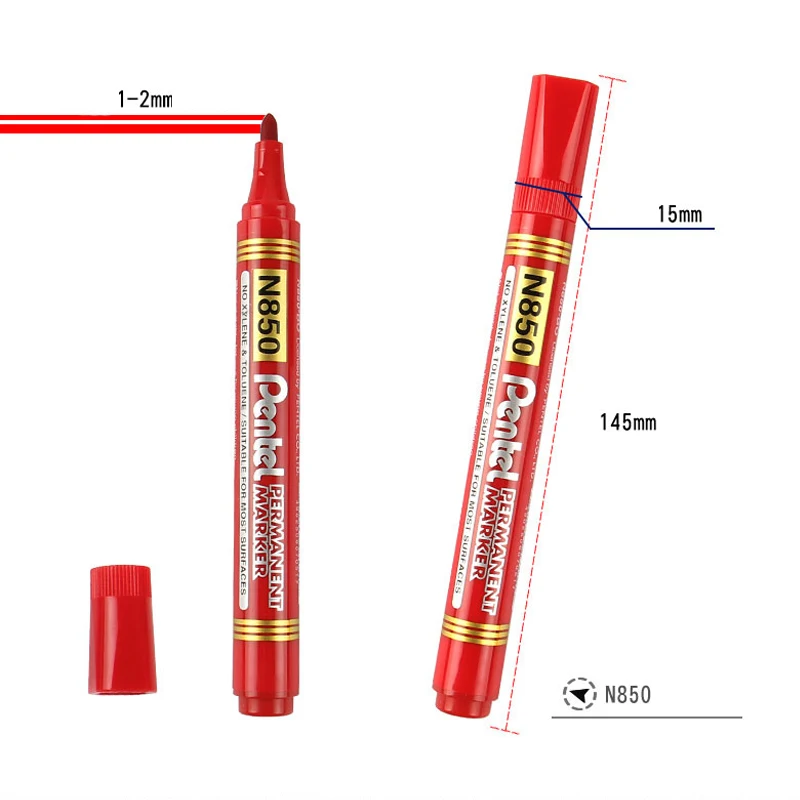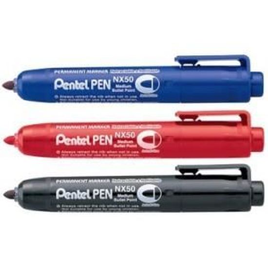 Staedtler Lumocolor Permanent Garden Marker (Açıkhava-Bahçe Kalemi) Özel Amaçlı Marqueur permanent pointe extra fine disponible en quatre couleurs basiques, noir, rouge, bleu et vert. Pentel-Marqueur permanent N50 N850, 4 pièces, pointe de 4.3mm, noir/bleu/vert/rouge, pour document ; Produit chimique à haute préoccupationAucun ; TailleL144... Marqueur Rouge Pentel Mw85 Marqueur 12 Pièce(s) Pointe Ogive Rouge Marker Permanent Le marqueur à pointe fine Pentel NMS50 utilise une encre spéciale sans xylène ou toluène qui ne dégage que peu d'odeur. L'encre permanente du marqueur peut s'utiliser sur presque toutes les surfaces, y compris le verre et le métal, pour vous aider à effectuer une grande variété de tâches Marqueur permanent pointe extra fine disponible en quatre couleurs basiques ; noir, rouge, bleu et vert.