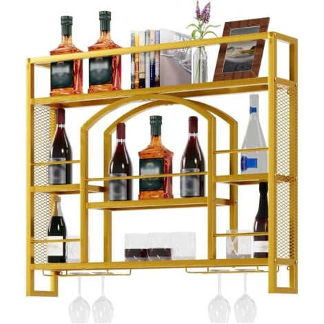 Ne surchargez pas le rack. Accrochez-le à votre mur et profitez de la commodité et de l'élégance qu'il apporte à votre bar ou votre cuisine Matériau de haute qualité : cette étagère murale industrielle est construite avec des étagères en fer forgé robuste et des planches en bois, ce qui sera une... Il vous permet d'accrocher vos verres à vin à l'envers, les gardant à portée de main et empêchant la poussière de se déposer à l'intérieur. Construction durable et robuste : fabriqué à partir de métal de haute qualité, ce casier à vin est conçu pour durer. Installez le support en toute sécurité en suivant les instructions fournies. Le design à 2 niveaux vous permet de stocker plusieurs bouteilles et verres, ce qui le rend idéal pour les amateurs de vin et les amateurs de vin Cette fonctionnalité permet non seulement d'économiser de l'espace mais ajoute également une touche de sophistication à votre présentation de vin Gardez le support loin des sources de chaleur et des zones où il pourrait être renversé. Support de verre pratique : le support de verre intégré ajoute de la fonctionnalité à ce casier à vin. Étagère Murale à Vin 2 Niveaux en Verre - Cave à vin Pro Étagères De Bar Flottantes En Fer Steampunk Industriel, Support Mural Rustique Pour Bouteilles De Vin T1 Avec Porte-verre Le colis comprend des instructions détaillées (français non garanti), ce qui en fait un processus d'installation sans tracas.