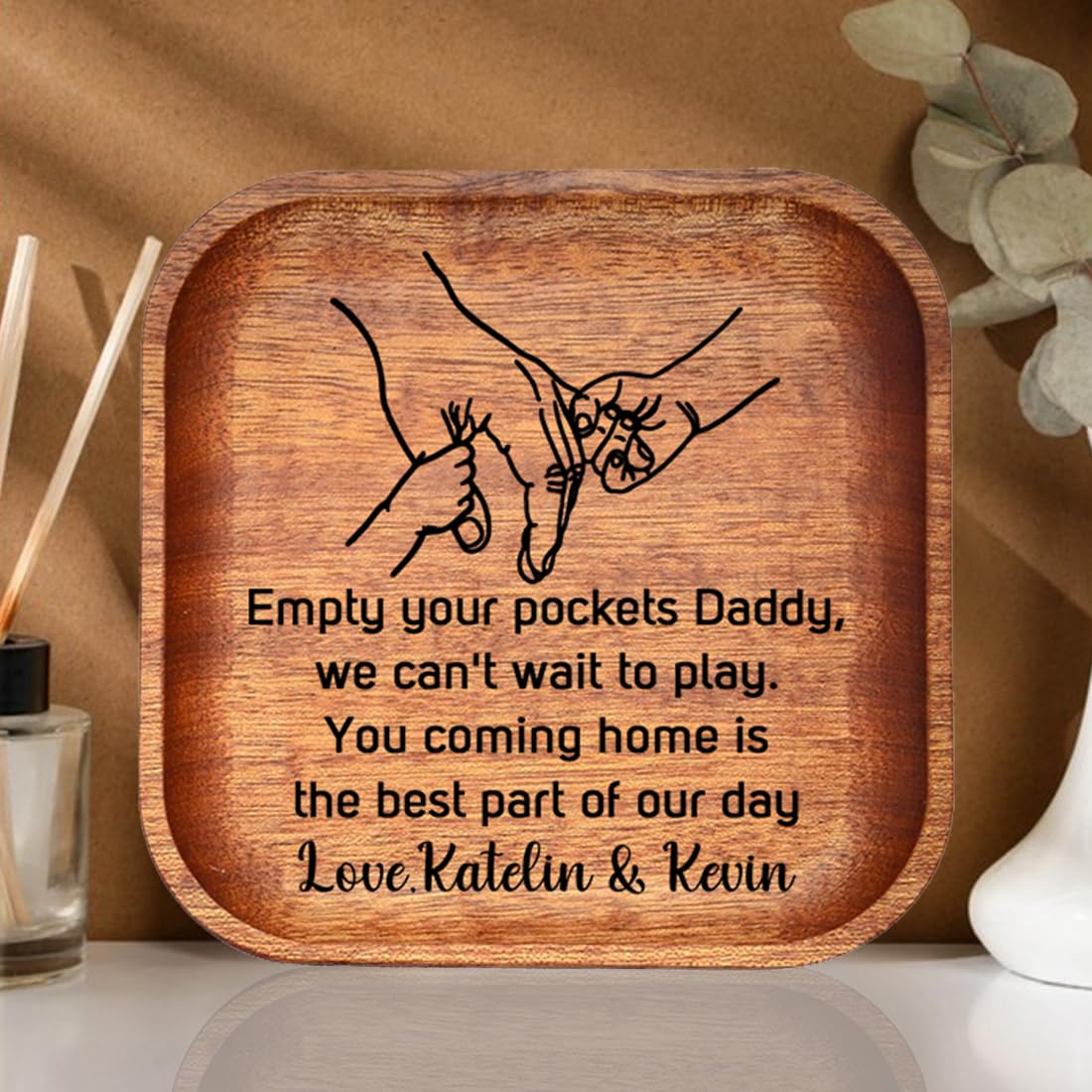 Plateau De Valet En Bois Personnalisé Vide Your Pockets Daddy, Plateau De Fête Des Pères Et Plateau De Pièces De Monnaie Pour Enfants, Cadeau émotionnel Pour Papa (style 1