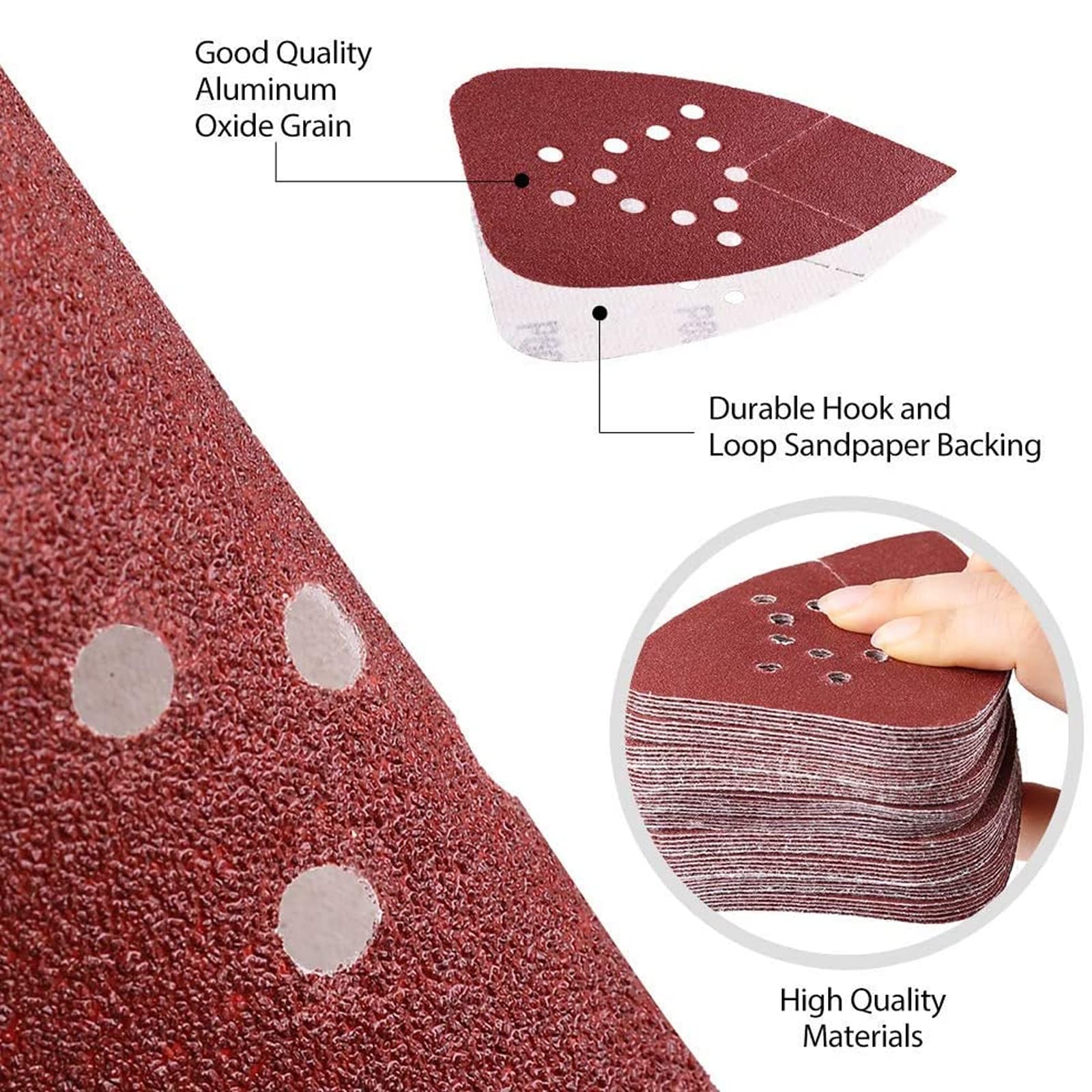 Large application : largement utilisé dans les meubles, le matériel et la réparation automobile. Peut être utilisé avec un composé de polissage pour produire une finition lisse. Multi-usage : fonctionne bien sur les matériaux métalliques et non métalliques de diverses surfaces complexes de rouille, peinture, ébavurage, joints de soudure, ponçage et polissage. Lot de 50 patins abrasifs pour ponceuses souris Black and Decker Parfaits pour le polissage général et peuvent travailler sur des surfaces semi-rugueuses pour les affiner et leur donner un joli lustre. Contenu : 1 lot de 30 papiers abrasifs triangulaires. Fabriqués en carbure de silicium électrolytique de haute qualité, liaison résine solide, résistant à la déchirure, chaque disque de ponçage est marqué d'un... - Selon la luminosité et les paramètres d'éclairage des écrans, la couleur réelle de l'article peut être légèrement différente de celle de la photo. Nous vous remercions de votre compréhension. Dimensions : 140 x 140 x 98 mm., Taille du grain : 40#/60#/80#/100#/120#/180#/240#/320#/400#/600#/800#/1000#. Pratique à utiliser : pré-perforé avec 6 trous pour une extraction uniforme de la poussière, antistatique, fournit un grain plus durable. Pratique à utiliser : pré-perforé avec 6 trous pour une extraction uniforme de la poussière, antistatique, fournit un grain plus durable. Contenu de l'emballage : 30 feuilles de papier abrasif triangulaire Pièce De Rechange Pour Ponceuse GENERIQUE Plateau De Ponçage 587295-01 Caractéristiques du produit : Type d'article : papier abrasif abrasif., Matériau : alumine., Couleur : rouge/marron.