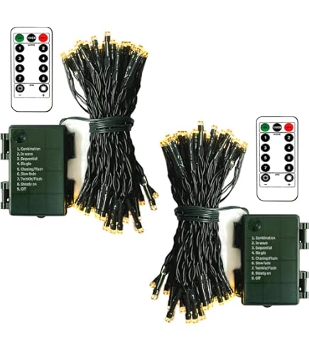 Couleur. Blanc Chaud · Marque. echosari · Utilisation intérieure/extérieure. Intérieur · Caractéristique spéciale. Alimenté par piles, Minuterie, Sans fil, Étanche Lot de 2 guirlandes lumineuses LED de 10 m, avec 100 belles étoiles 4., Idéal pour décorer votre sapin de Noël, fêtes, mariage, armoire, table, jardin, clôture, patio, etc. Programme de minuterie Lorsque vous allumez la guirlande lumineuse, les lumières s'allument automatiquement pendant 6 heures, puis s'éteignent pendant les 18 heures suivantes, vous permettant de profiter d'un éclairage sans tracas chaque jour. 12 Packs Guirlandes Lumineuses À Piles, 20 Leds 2M Guirlande En Cuivre Mini Guirlande Led Guirlande Led Avec Telecommande Lot De 2 Guirlandes Lumineuses D'Extérieur 10M 100 Led 8Modes De Fil De Guirlande Lumineuse Halloween Extérieur Guirlande Lumineuse Pile Minuterie automatique : lorsque vous allumez la guirlande lumineuse, les lumières s'allument automatiquement pendant 6 heures puis s'éteignent pendant les 18 heures suivantes, vous permettant de profiter d'un éclairage sans tracas chaque jour. Guirlande lumineuse étanche : l'indice d'étanchéité IP68 vous permet d'utiliser ces lumières à l'extérieur sans vous soucier de la pluie ou de l'humidité Efficacité énergétique : la guirlande lumineuse LED echsoari garantit une faible consommation d'énergie tout en fournissant une lumière vive et constante. Avec 2 paquets inclus, vous aurez un total de 20 m d'éclairage magique pour créer de superbes décorations Longueur : chaque brin mesure 10 m de long, offrant suffisamment de longueur pour décorer de plus grandes zones ou enrouler autour d'objets. Lot De 2 Guirlandes Lumineuses à Piles, 13 M, 120 LED, étanche, Avec Télécommande 8 Modes, Intérieur/extérieur, Pour Jardin, Mariage, Fête, Festival... Effet de lumière (8 modèles) : 1., Combinaison 2., En vague 3., Séquentiel 4., Slo Glo 5., Poursuivi/Flash 6., Fondu lent., 7., Scintillement/Flash 8., Fixe.