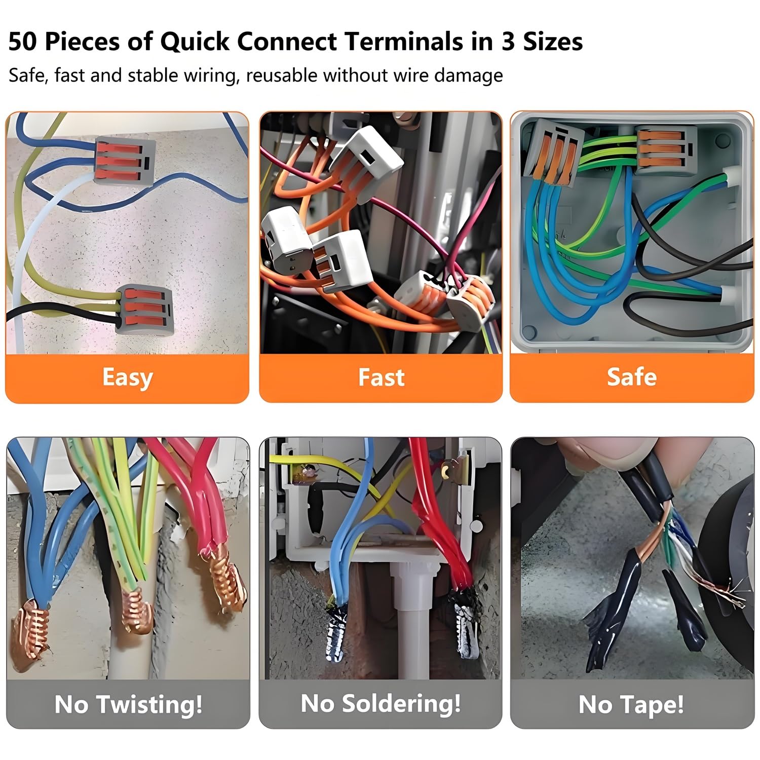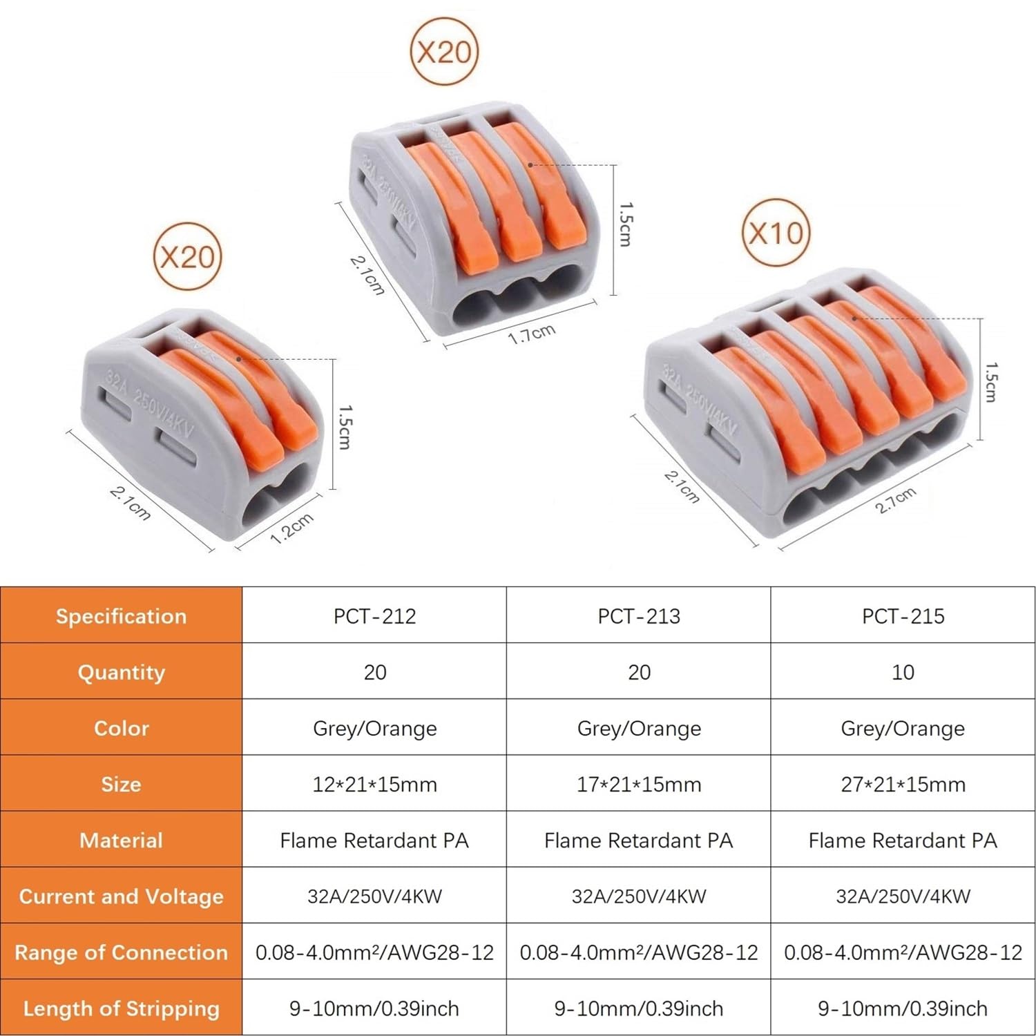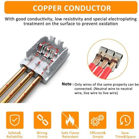 Le matériau conducteur interne est du cuivre nickelé, et le revêtement en nickel sur la surface empêche l'oxydation et a une bonne conductivité. Le kit contient 20 entr es 2 ports, 20 entr es 3 ports et 10 entr es 5 ports. Les connexions électriques peuvent être combinées librement. Bornes de Connexion lectriques S res Le mat riau des bornes de connexion lectriques est du PA66 ignifug (bouton orange) PA66 ignifug (bo tier gris), qui r siste la corrosion, ne s'use pas facilement et a une longue dur e de vie. Clips en acier inoxydable pour un câblage stable Le matériau de l'enveloppe est le nylon PA66 Cuivre nickelé, bonne conductivité Retardateur de flamme et sûr Le matériau de la borne à ressort est de l'acier inoxydable, qui est flexible et ne se détache pas facilement. 100 mini bornes à levier CAPRI - 2 entrées | ENVAIN MATERIAUX 【Bornes de Connexion Électriques Sûres】Le matériau des bornes de connexion électriques est du PA66 ignifugé (bouton orange) / PA66 ignifugé (boîtier gris), qui résiste à la corrosion, ne s'use pas facilement et a une longue durée de vie. Les connexions lectriques peuvent tre combin es librement. 【Scénarios d'application pour les Bornes de Connexion Électrique】Cette borne de connexion peut être utilisée pour le câblage domestique et d'atelier. Wago 4 Entrées Connecteurs Électriques Rapide Avec Levier,34 PCS Bornes De Connexion Rapide 1 Fil 2 Entreesdomino Electrique Rapidesconnecteur De Fil De Cable Peut Etre Librement Combinepapc Ignifuge 77053692 Wago 6mm2 Le mat riau de la borne ressort est de l'acier inoxydable, qui est flexible et ne se d tache pas facilement. 【Borne de Connexion Électrique Facile à Installer et Réutilisable】Les bornes de connexion vous permettent de connecter facilement des fils sans soudure ni collage, ouvrez le levier orange et connectez le câble, fermez le levier orange et la connexion du câble est établie. La pince de connexion est compacte et réutilisable. Il convient aux connexions parallèles et multiples, par exemple pour les lampes, les prises de courant, les interrupteurs, les voitures, les haut-parleurs et d'autres situations où les fils doivent être connectés. Connecteurs Électriques Rapide avec Levier,80 PCS Bornes de Connexion...