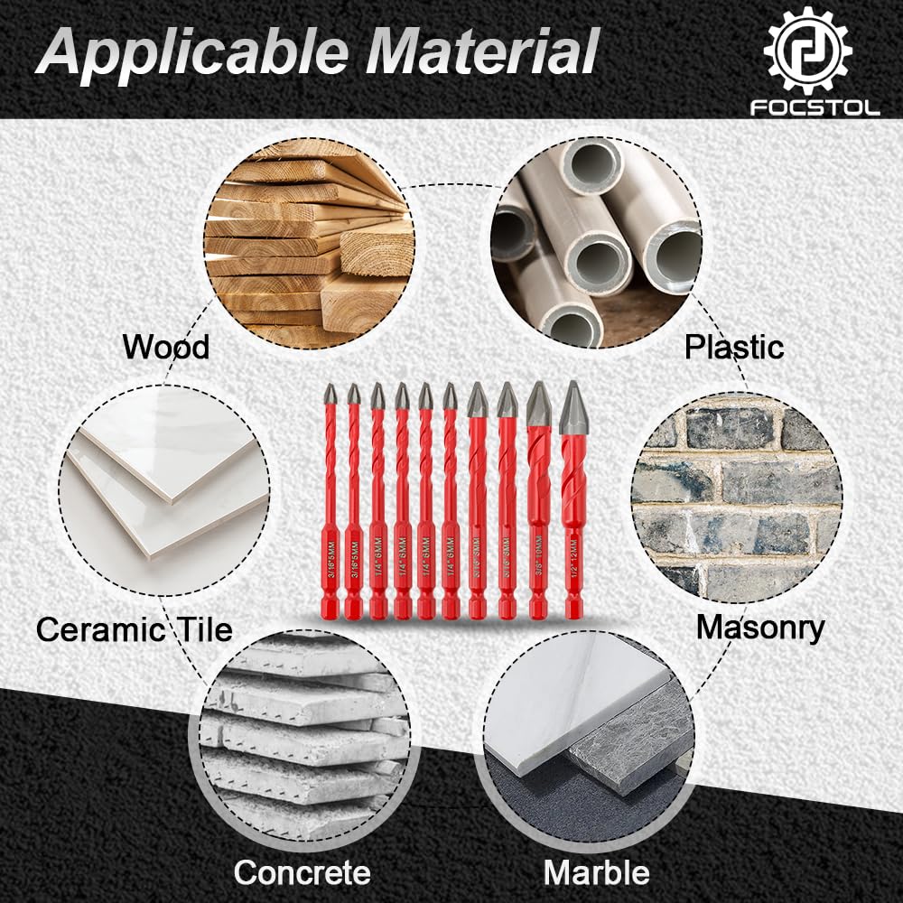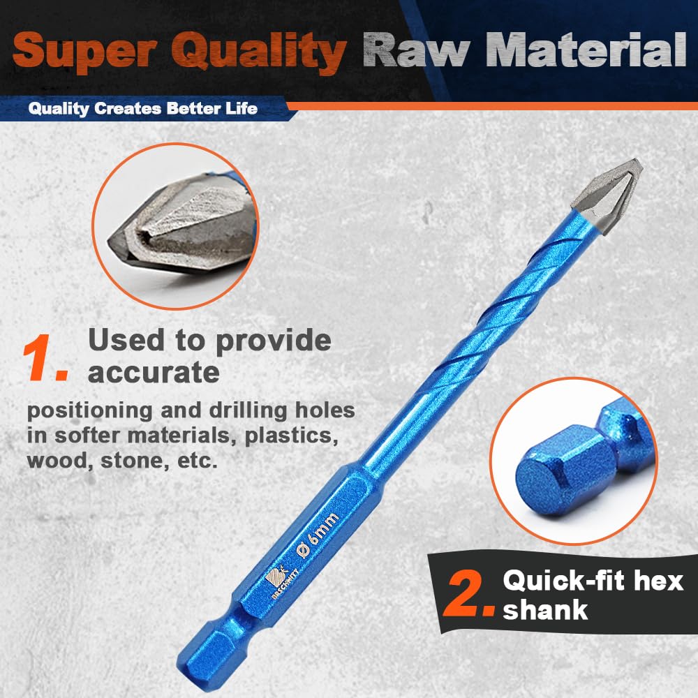 √Taille Total 5 pcs/set : Diamètre (12MM) ; Longueur totale 90mm ; Longueur de la mèche 20mm ; Longueur de travail 54mm ; Tige hexagonale à changement rapide ; Diamètre du manche 6., 35mm Taille]Totalement 10 pièces/set: diamètre 5/5/6/6/6/6/8/8/10/12mm; longueur totale 90mm; longueur de tête de coupe 9/11/14/17/20mm; longueur de travail... Polyvalent, cet outil permet à la fois un perçage autonome et sert de guide de précision pour d'autres perceuses. Bosch Professional Set De Foret Sec 10 Pièces Foret Excentrique à Tête Oblique 3 Scie Cloche Bosch Le corps du foret est fabriqué à partir d'un acier matriciel à haute résistance sélectionné, qui peut aider efficacement au perçage et a une longue durée de vie. ROM Foret D'Étape Hélicodal Foret Étagé Avec Clé 9.5Mm Tige Droite... Cikonielf foret hexagonal Foret à tige hexagonale en acier rapide de 6,35 mm pour le retrait des √ MATÉRIAU DE QUALITÉ--CARBURE La pointe du foret est soudée avec du carbure de qualité industrielle, qui présente une bonne résistance à l'usure et peut facilement pénétrer dans divers matériaux. √ Conception excentrique à tête inclinée - offrant une précision de perçage optimale et une efficacité accrue : la géométrie spéciale réduit considérablement l'usure tout en prolongeant la durée de vie, tandis que les rainures spiralées assurent une évacuation fluide des copeaux.