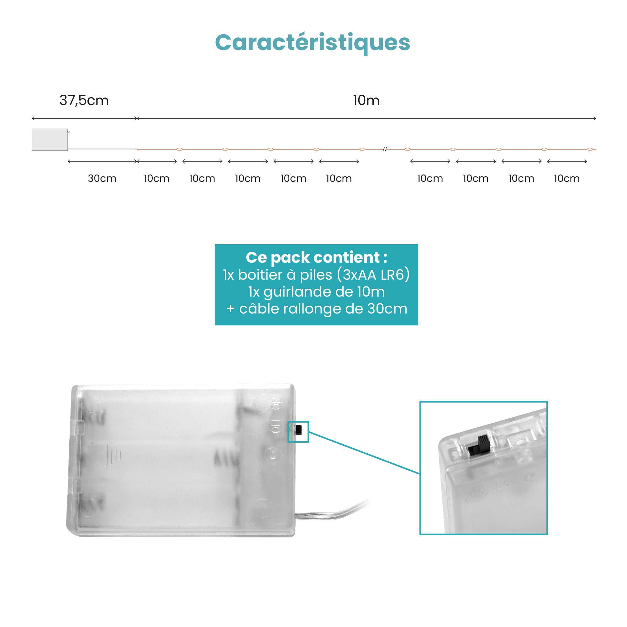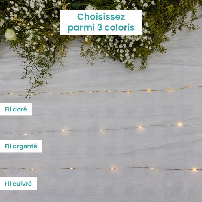 Pas d'éblouissement, et les lumières chaudes douces afin de protéger vos yeux Alimentation par piles : 3 piles AA requises pour chaque guirlande lumineuse (piles non incluses) ; chaque guirlande lumineuse décorative se termine par un boîtier à piles transparent pour les piles et allumez le bouton d'alimentation pour faire fonctionner la lumière. Lot de 2 guirlandes lumineuses 100 LED, 10 m, 8 modes, USB Possibilités de bricolage infinies : le fil de cuivre doré est assez flexible, facilement plié dans n'importe quelle forme que vous aimez, idéal pour créer une veilleuse, mettre dans des bocaux Mason, accrocher des photos, décorer des arbres de Noël, une guirlande ou toute autre décoration de festival. Basse tension et faible chaleur, sans danger pour les enfants et les animaux de compagnie, laissez vos tout-petits se détendre et profiter de la magie des guirlandes lumineuses à micro riz. Large application : la guirlande lumineuse est une excellente décoration pour terrasse, intérieur, extérieur, jardin, maison, allée, chemin, camping, pelouse, Noël, fête d'Halloween ; chambre, bar, cuisine ; le charmant éclairage doux peut créer un excellent éclairage et une atmosphère chaleureuse et romantique à la tombée de la nuit. Inspirez la décoration créative : les guirlandes lumineuses LED sont sur un fil de cuivre ultra fin. Étanchéité IP44 et sans danger au toucher : résiste à toutes les conditions météorologiques, et peut même être immergé dans l'eau (sauf le boîtier à piles), convient pour l'intérieur et l'extérieur. Étanchéité IP44 et sans danger au toucher : résiste à toutes les conditions météorologiques, et peut même être immergé dans l'eau (sauf la boîte à piles), convient pour l'intérieur et l'extérieur. Lot de 2 guirlandes lumineuses LED 10 m 100 LED USB avec interrupteur... Pas d'éblouissement, et les lumières chaudes douces pour protéger vos yeux. Guirlande Lumineuse Exterieure Pile SHATCHI Lot De 2 Guirlandes Lumineuses à 100 LED/10 M Guirlande Exterieur Pile Bricolage et pliable : fil d'argent pliable de haute qualité, façonné autour des plantes, des panneaux, des meubles, et presque tout ce que vous pourriez penser, et convient pour un bocal Mason, des bouteilles de vin et des bocaux cloches. Alimentée par piles et sécurité : nos guirlandes lumineuses à piles sont légères et portables, ce qui les rend incroyablement faciles à cacher et à fondre parfaitement dans n'importe quel espace. Guirlande lumineuse à 100 LED : chaque guirlande lumineuse décorative est dotée d'un fil de cuivre malléable de 10 m et de 40 mini LED lumineuses avec effet blanc chaud, idéale pour la table, la chambre, un mariage, une fête, un anniversaire, Halloween, Noël, le Nouvel An., Lot de 2 pièces. Fonctionne avec 3 piles AA (non fournies). Décoration de mariage, Noël, fête, toile de fond, cour, auvent, lit, fleurs, couronnes, arbres de Noël et bouquets pour créer une ambiance chaleureuse, joyeuse, romantique et festive pour la Saint-Valentin, Halloween, une fête d'anniversaire, un rendez-vous, le jardin, la maison, la chambre, Noël, les vacances et les mariages.