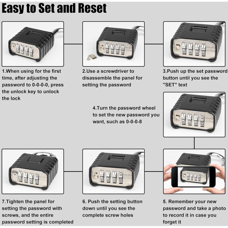 Choisissez nous et vous avez la sécurité sous contrôle., 1., CONCEPTION HUMAINE : la serrure pour casier avec fenêtre latérale permet une identification rapide et une lecture facile des combinaisons de code à quatre chiffres. NAGE Cadenas à Combinaison à 4 Chiffres - Pour Salle De Gym Tirez l'anse et tournez-la à 90 ° dans le sens opposé des aiguilles d'une montre. Qu'il s'agisse d'un verrou de salle de sport ou de porte d'entrée, c'est le choix idéal pour vous. ZHEGE Cadenas à combinaison pour extérieur, serrure à 4 Sa taille appropriée et son poids modéré garantissent une utilisation, un rangement et une portabilité pratiques., 2., Sécurité et confort : le cadenas à 4 chiffres pour casiers offre 10 000 codes numériques, ce qui offre 10 fois plus de sécurité qu'un cadenas à trois chiffres. Large gamme d'applications ZHEGE Cadenas à 4 chiffres avec code numérique, résistant aux intempéries, pour salle de sport, casier, porte (2. Livraison gratuite. 39,99 €. 2% Bon de... Appuyez sur l'anse vers le bas (ne relâchez pas) et tournez-le ensuite à 90° jusqu'à la ligne de code dans le sens opposé des aiguilles d'une montre. Que ce soit à l'extérieur ou à l'intérieur, il vous offre une excellente protection. Plus de soucis pour les porte-clés ou la perte – il suffit de rappeler votre code à quatre chiffres., 3., CONSTRUCTION DURABLE ET ROBUSTE : fabriqué en alliage de zinc et en acier trempé, le verrou NAGE à code présente une durabilité et une robustesse exceptionnelles., 4., Utilisation polyvalente : le cadenas suspendu à chiffres NAGE offre une sécurité aussi bien à l'intérieur qu'à l'extérieur et est idéal pour les casiers de gymnase, les cabines scolaires, les boîtes à outils, les entrées de clôture et plus encore., 5., Achetez en toute confiance : les serrures NAGE sont livrées avec une garantie de 1 an et un support technique. Définir votre propre code numérique Tournez les chiffres jusqu'à ce que le mot de passe actuel soit atteint (par défaut : 0-0-0-0). Verfahren zur Einstellung des Passworts Vidéo de marchand Faites défiler les boutons rotatifs pour définir votre propre combinaison, par exemple B., 1111., Retournez l'anse dans la colonne de réglage, soulevez-la. Protection complète pour une sécurité irréprochable. Qu'il s'agisse d'un conteneur, d'une armoire, d'un tiroir ou d'une boîte à outils, nos serrures à combinaison offrent une protection fiable.